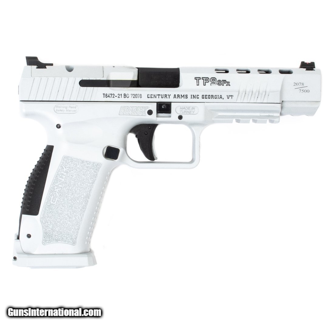 Description: Guns Listing ID: 537031 This Canik TP9 SFX features an optic-ready slide with lightening cuts, a fixed blacked-out rear sight with a red fiber optic front sight, an extended flared magwell, an extended mag release, and an extended slide release. \"2078/7500\" is engraved on the slide. Purchase includes the original hard case, owner‚s manual, two 18-round magazines, backstraps, and optic plates. Get the best bang for your buck when you get a Certified Used Firearm . When you see the Certified Used stamp on any of our firearms, you can be confident that you‚re getting exactly what you want – a gun only in very good to excellent condition and held to the highest quality standard. All Certified Used Guns come with a ‚no questions asked‚ return policy . PLUS, ALL CERTIFIED USED GUNS SHIP FREE! SOLD Manufacturer: CANIK Model: TP9 SFX Caliber Info: 9MM LUGER (9X19 PARA) Condition: Used - Certified Barrels: 5.20 BARREL Action: SEMI AUTOMATIC Finish: white Weight: 1.6 |