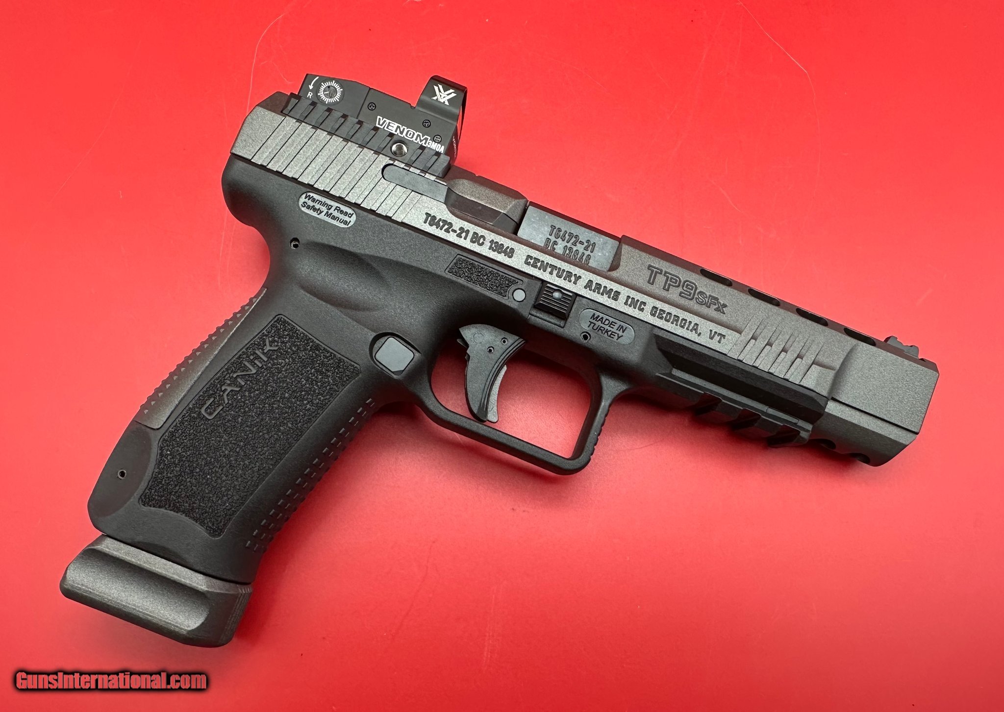 Description: Guns Listing ID: 545745 This is an Excellent Condition and Unfired Canik TP9 SFX with factory box, 2x 18 rd mags, OWB holster and all the optics plates and backstraps and tools. Comes with a Vortex Venom Red Dot as well. SOLD Manufacturer: CANIK Model: TP9 SFX Caliber Info: 9MM LUGER (9x19 PARA) Condition: Used - Non-Certified Barrels: 5 BARREL Action: SEMI AUTOMATIC Finish: black and gray |