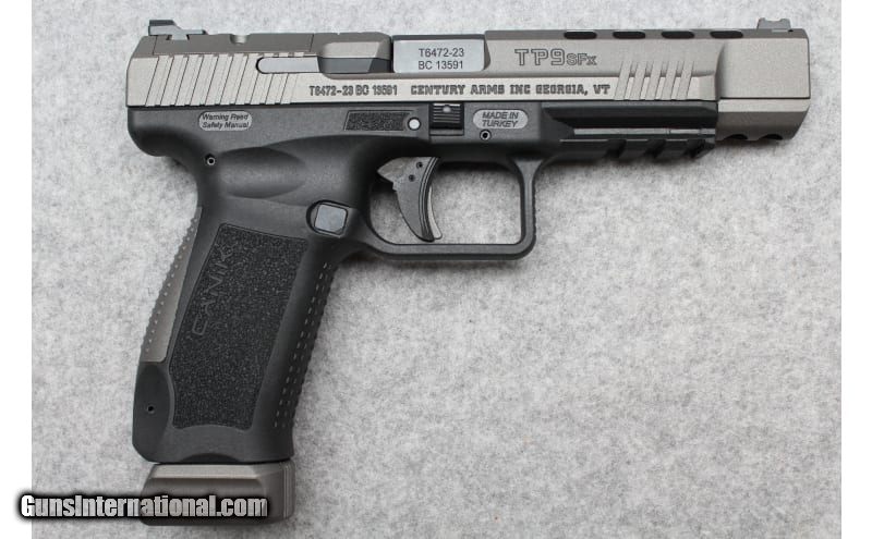 Description: Designed with a match-grade barrel, the Canik TP9SFx 9mm Luger Semiautomatic Pistol has a serrated slide with lightning cuts, a Warren fiber-optic front sight and a striker status indicator. The slide stop is extended and ergonomically designed, and the magazine catch is adjustable and reversible. MIL-STD 1913 Picatinny rail. 9mm Luger SOLD Barrels: 5 in Weight: 1.8 lbs Sights: Red Fiber Optic Front/Black Serrated Square Notch Rear Item Location: Farmington, UT |
