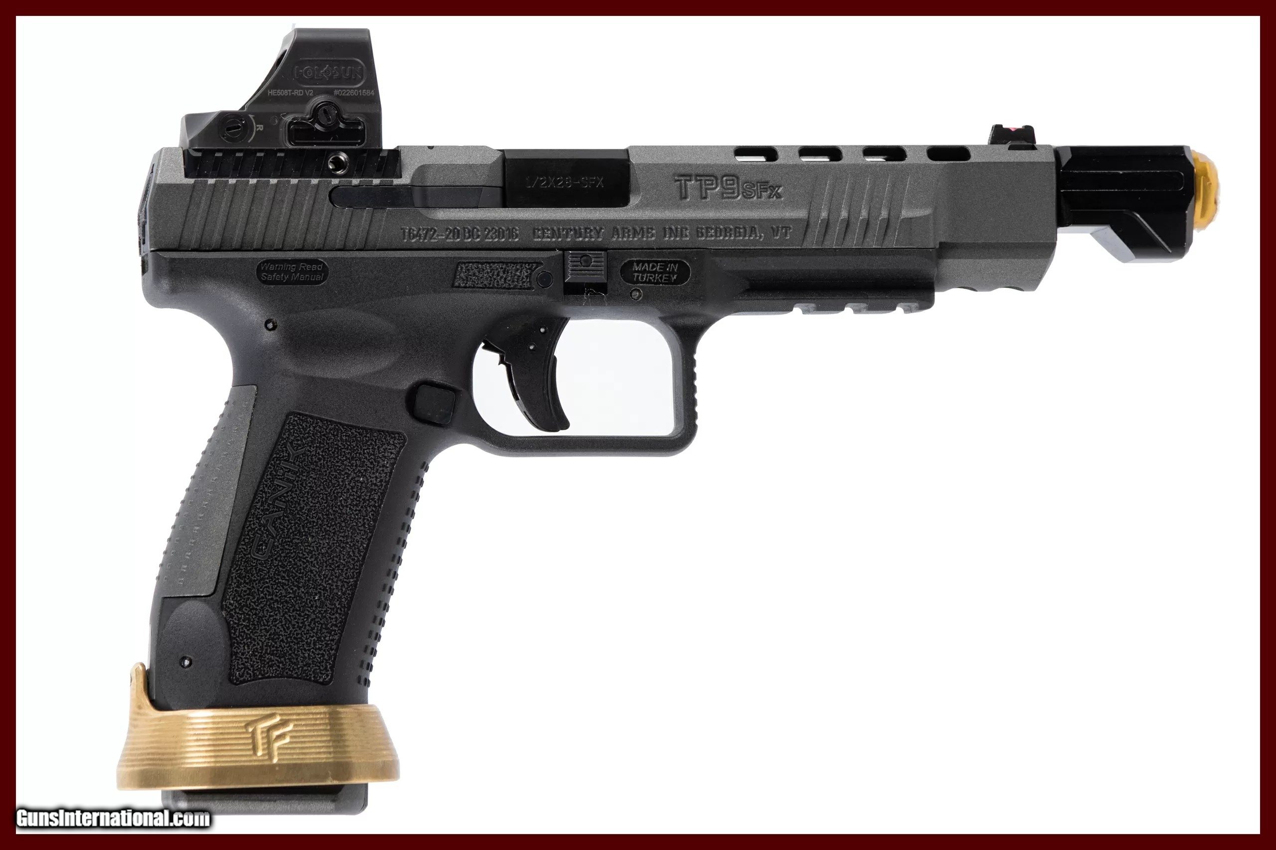 Description: Canik Model TP9 SFX chambered in 9 Millimeter with a 5 inch barrel, mirror-shine bore, immaculate rifling. Comes with case and 1 extra mag, sports a Holosun red dot optic along with a compensator and magwell. The NRA grading condition for this USED firearm is Excellent. Dury's Lifetime Warranty: All firearms purchased from Dury’s Gun Shop, NEW or USED, are covered by a lifetime warranty. We will repair or replace, at our discretion, any firearm purchased from Dury’s Gun Shop, Inc. for as long as it is owned by the purchaser. This warranty is not transferable. WE BUY GUNS! NO COLLECTION TOO BIG OR SMALL FOR OUR GUNS INTERNATIONAL CUSTOMERS ALL OF OUR FIREARMS CAN BE PURCHASED DIRECTLY FROM OUR DURY'S GUNS SITE ! SOLD Manufacturer: Canik Model: TP9SFX Caliber Info: 9 mm Barrels: 5inches |