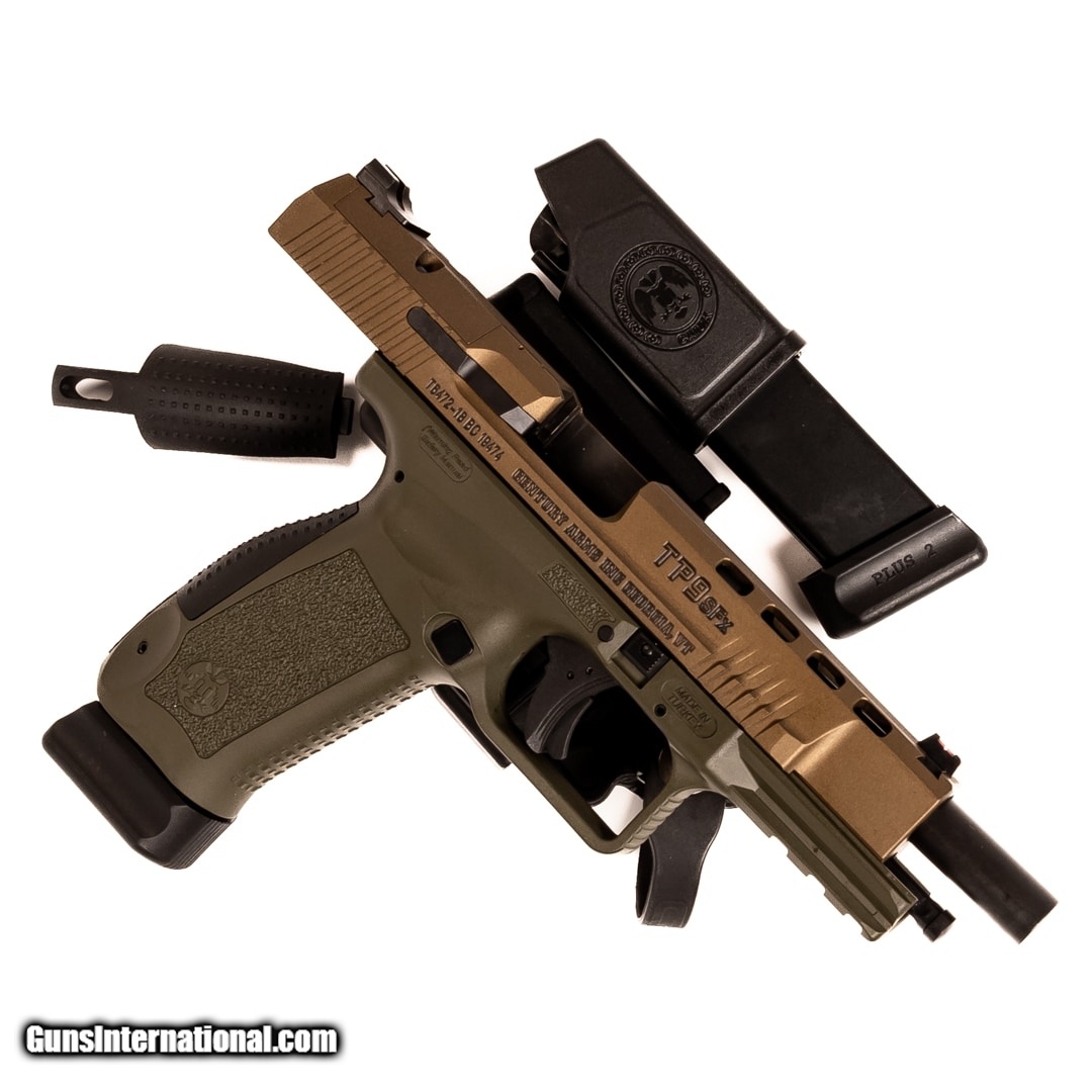 Description: Guns Listing ID: 654177 The Canik TP9SFX is a competition-ready pistol that boasts a wide variety of features that are hard to find in factory handguns. If you‚‚re looking for a budget-friendly handgun designed to perform, it doesn‚‚t get any better than the Canik TP9SFX! This TP9SFX includes the original case, manual, two 20-round magazines, four optic plates, a loader, and a right-handed holster. Get the best bang for your buck when you get a Certified Used Firearm . When you see the Certified Used stamp on any of our firearms, you can be confident that you’re getting exactly what you want – a gun only in very good to excellent condition and held to the highest quality standard. All Certified Used Guns come with a ‘no questions asked’ return policy . PLUS, ALL CERTIFIED USED GUNS SHIP FRE SOLD Manufacturer: CANIK Model: TP9 SFX Caliber Info: 9MM LUGER (9X19 PARA) Condition: Used - Certified Barrels: 5 barrel Finish: TWO-TONE |