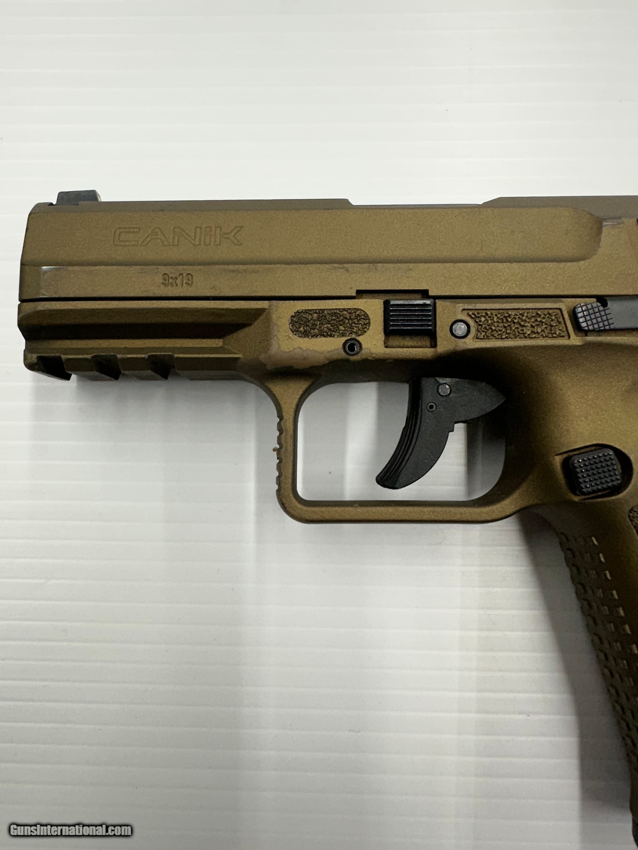 Description: Guns Listing ID: 1099631 Canik TP9DA 9mm Luger Pistol With 1 magazine used SOLD Manufacturer: CANIK Model: TP9DA Caliber Info: 9MM LUGER (9X19 PARA) Condition: Used - Non-Certified Barrels: 4 BARREL Finish: BURNT BRONZE |