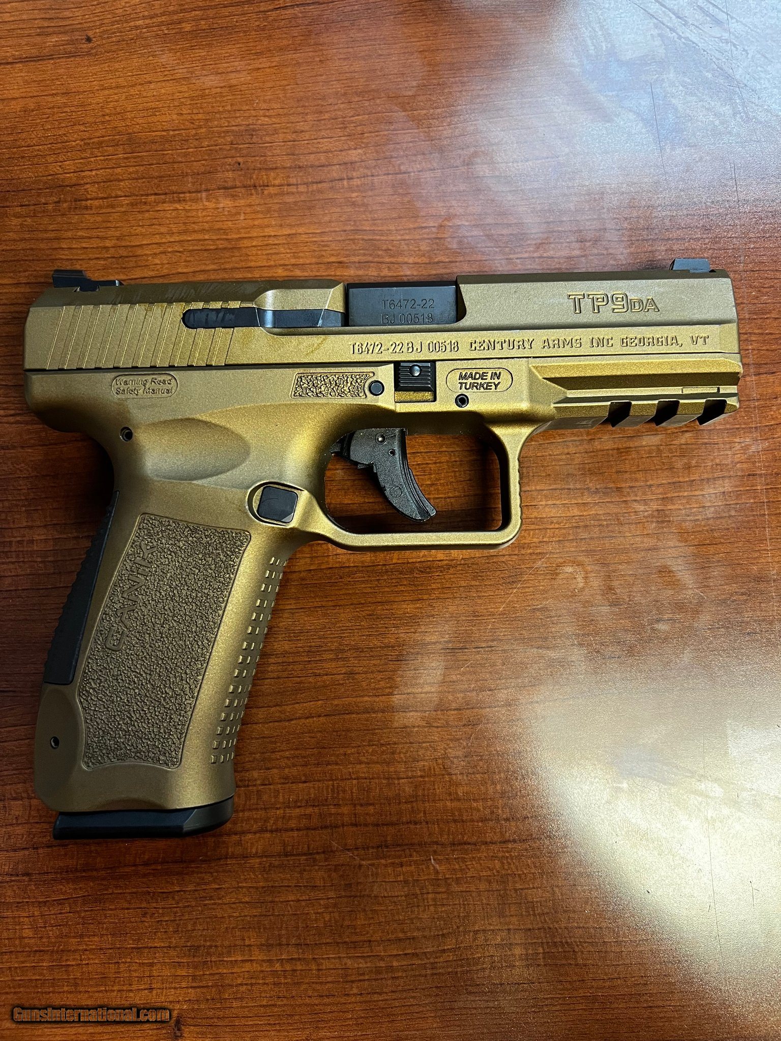 Description: Guns Listing ID: 1338443 The TP9 DA, what more can we say! The Double Action and Single Action Trigger group make it an amazing firearm to handle while making it extremely safe to operate. The top-mounted decocker and disassembly button, allows the user to operate the trigger in double-action(DA) and allows for a safer carrying technique while carried in DA mode. The internals have been nickel coated, in order to provide a smooth trigger pull and better interaction amongst internal parts. While both of the paint job styles offered for this firearm are completed with a Nitride Finish, our Bronze model comes with an extra overcoat of Burnt Bronze Cerakote, which allows rust inhibition and maximum protection for the firearm and its parts. Finally, this firearm comes with an interchangeable magazine release, in order to accommodate left-handed shooters. SOLD Manufacturer: CANIK Model: TP9DA Caliber Info: 9MM LUGER (9X19 PARA) Condition: Used - Non-Certified Barrels: 4 BARREL Finish: BRONZE |