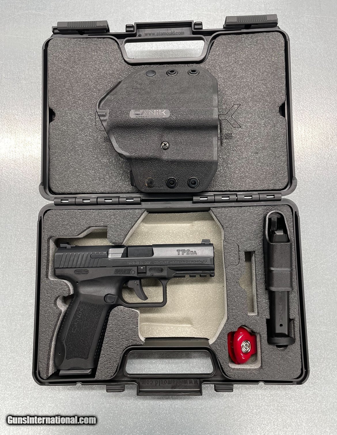 Description: Guns Listing ID: 1397780 Used Canik TP9DA 9mm it does have some scratches and scuffs on it. Includes hard case, holster, extra mag, speed loader, cleaning brush and back strap. SOLD Manufacturer: CANIK Model: TP9DA Caliber Info: 9MM LUGER (9X19 PARA) Condition: Used - Non-Certified Barrels: 4 BARREL Finish: BLUED |
