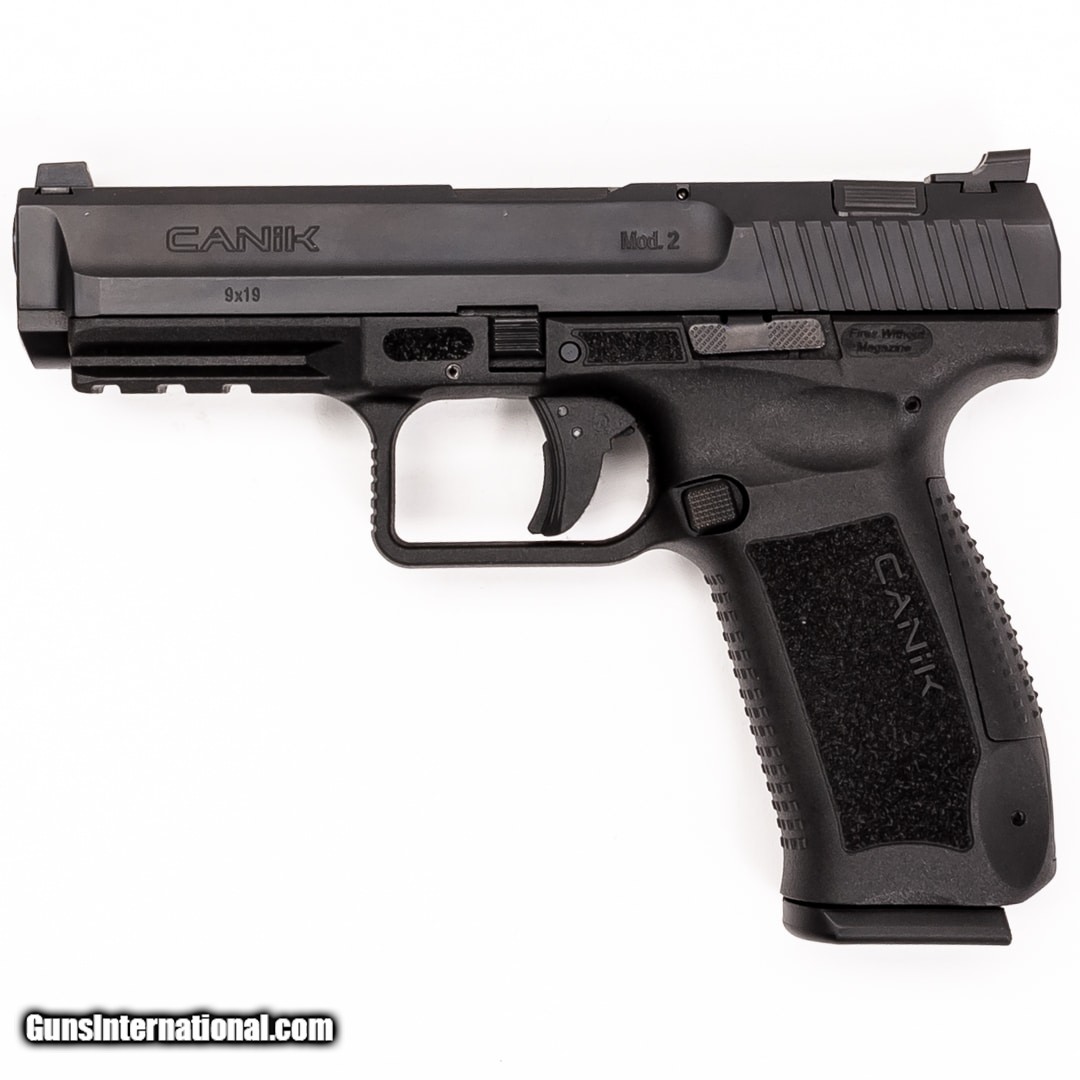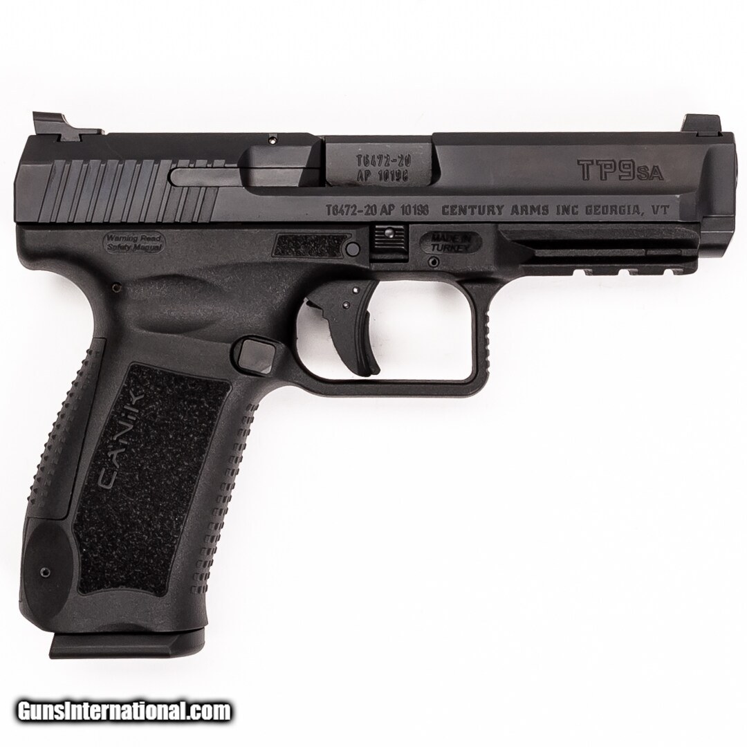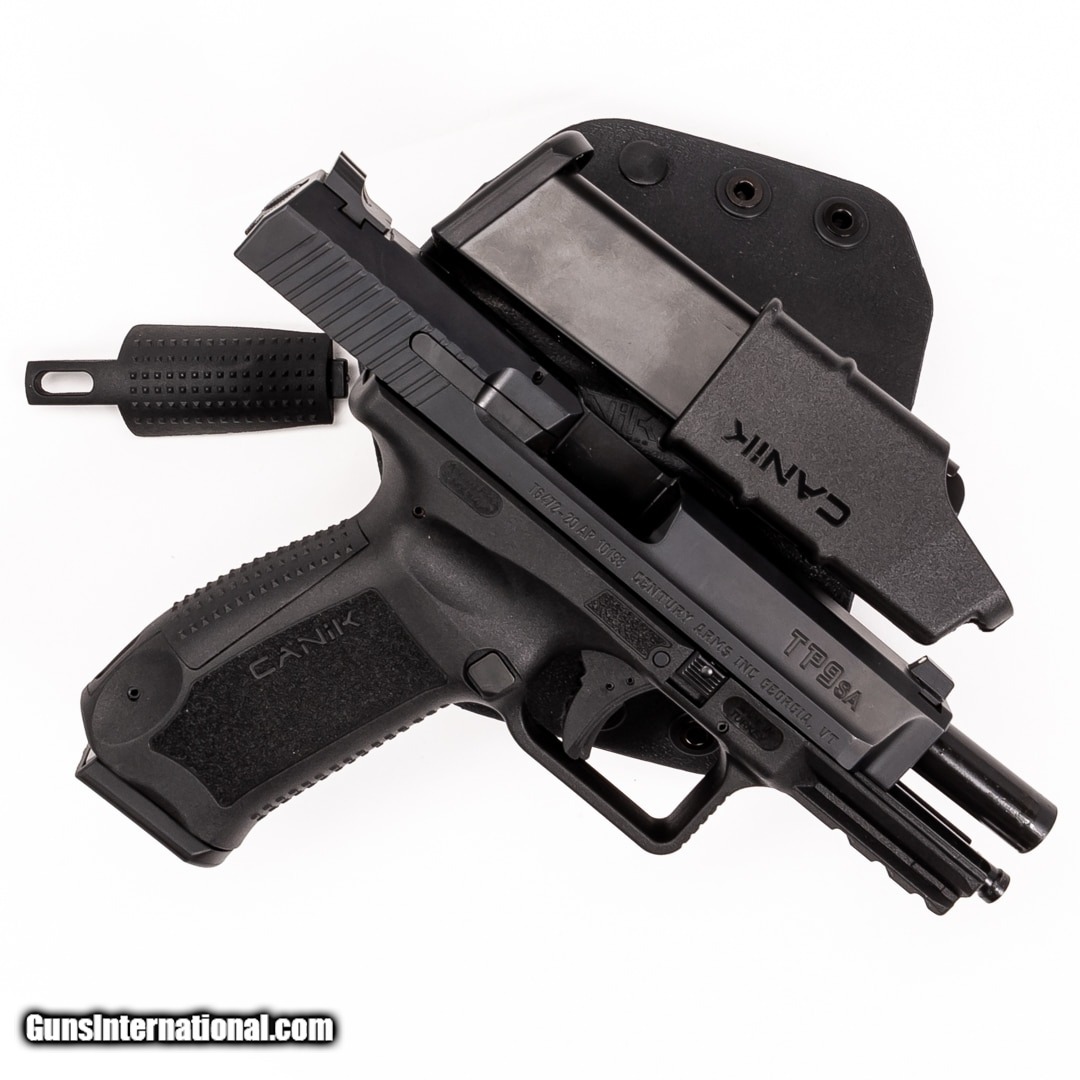 Description: Guns Listing ID: 335718 This Canik TP9SA is a semi-automatic handgun chambered in 9mm and made with an improved trigger. Rugged and reliable, this pistol sports a polymer frame and match-grade barrel. The textured polymer grips with lined front and back straps provide a secure grasp through every shot, while the integral rail in front of the trigger guard allows the user to attach their choice of accessories easily. Other features of the TP9SA include an ambidextrous decocker, loaded chamber indicator, and a reversible magazine catch. This TP9SA is in very good condition and has a decocker on the top of the slide. Purchase includes the original case, owner‚‚s manual, two 18-round magazines, two sizes of backstraps, and a right-handed holster SOLD Manufacturer: CANIK Model: TP9SA Caliber Info: 9MM LUGER (9X19 PARA) Condition: Used - Certified Barrels: 4.5 BARREL Finish: BLACK |