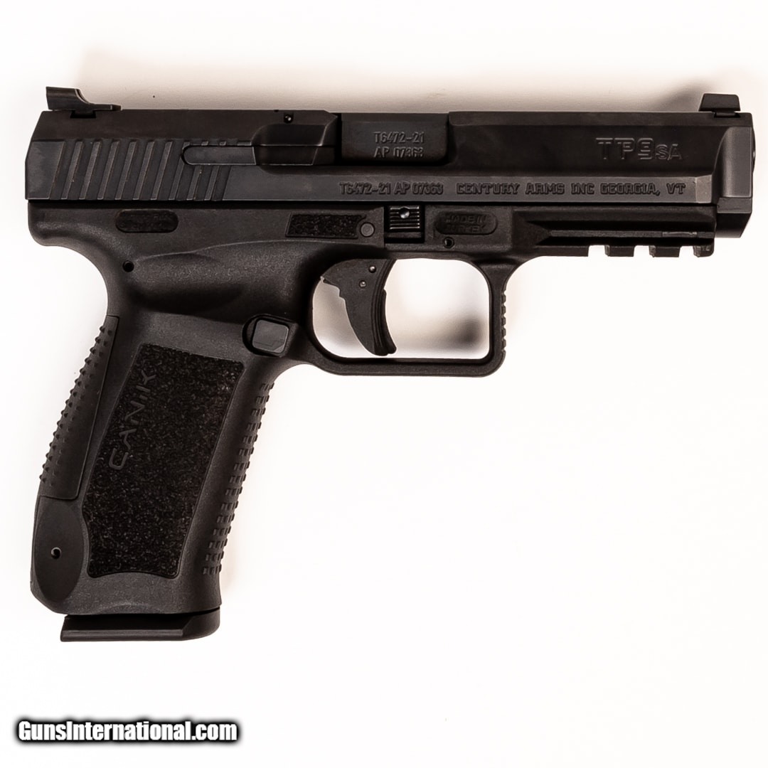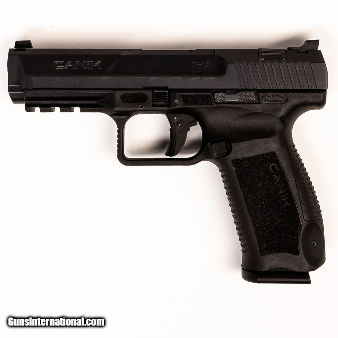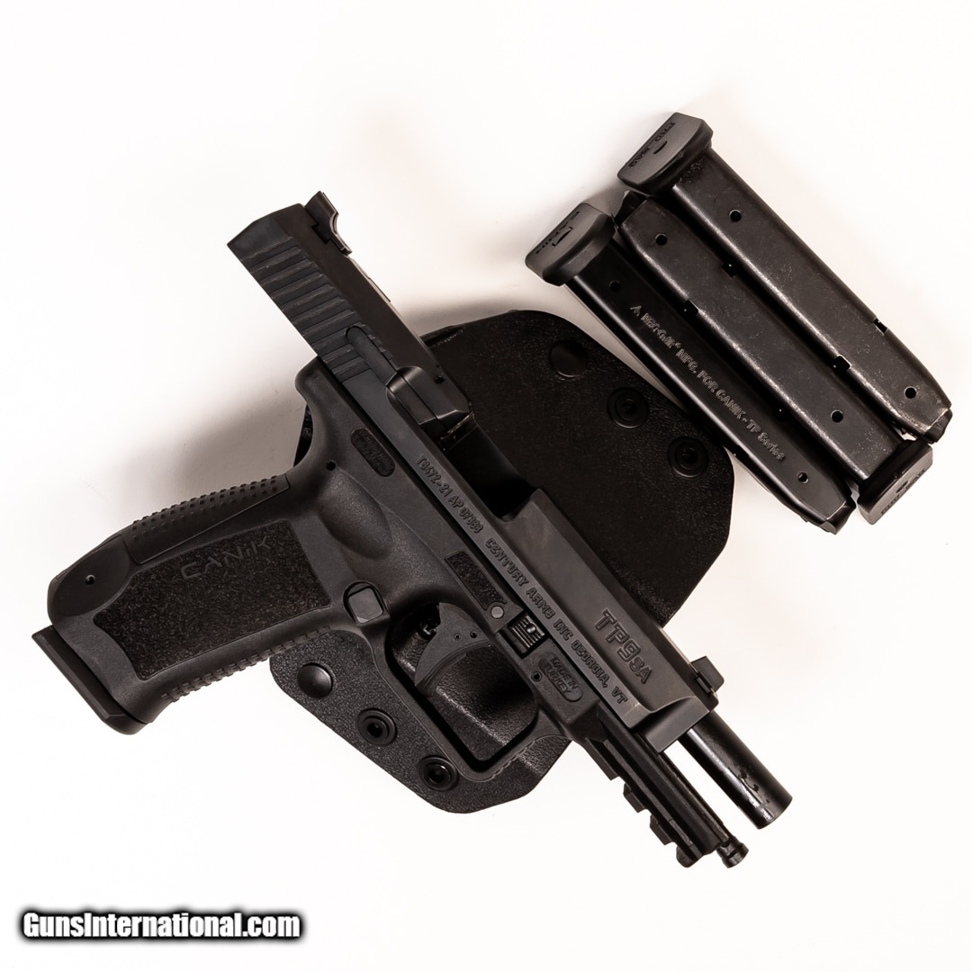 Description: Guns Listing ID: 537751 This Canik TP9SA is a semi-automatic handgun chambered in 9mm and made with an improved trigger. Rugged and reliable, this pistol sports a polymer frame and match-grade barrel. The textured polymer grips with lined front and back straps provide a secure grasp through every shot, while the integral rail in front of the trigger guard allows the user to attach their choice of accessories easily. Other features of the TP9SA include a loaded chamber indicator and a reversible magazine catch. This TP9SA includes the original case, manual, four 18-round magazines (two Promags), and a right-handed OWB OEM holster. SOLD Manufacturer: CANIK Model: TP9SA Caliber Info: 9MM LUGER (9X19 PARA) Condition: Used - Certified Barrels: 4.3 barrel Finish: BLACK |