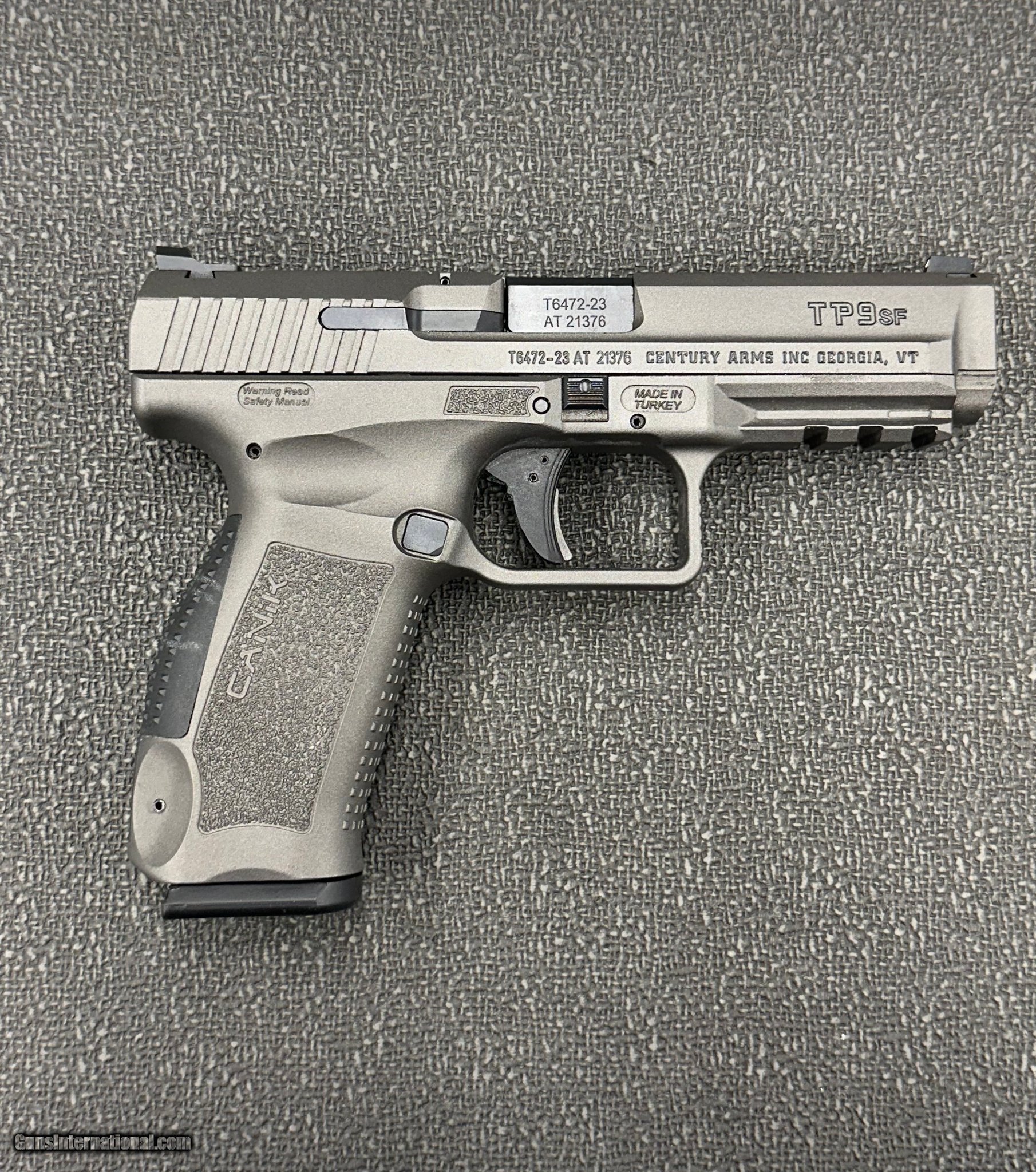 Description: Guns Listing ID: 537700 Used Canik TP9SF in very good condition with little to no signs of use. Few small scuffs. SOLD Manufacturer: CANIK Model: TP9SF Caliber Info: 9MM LUGER (9x19 PARA) Condition: Used - Non-Certified Barrels: 4.25 BARREL Action: SEMI AUTOMATIC Finish: tungsten |