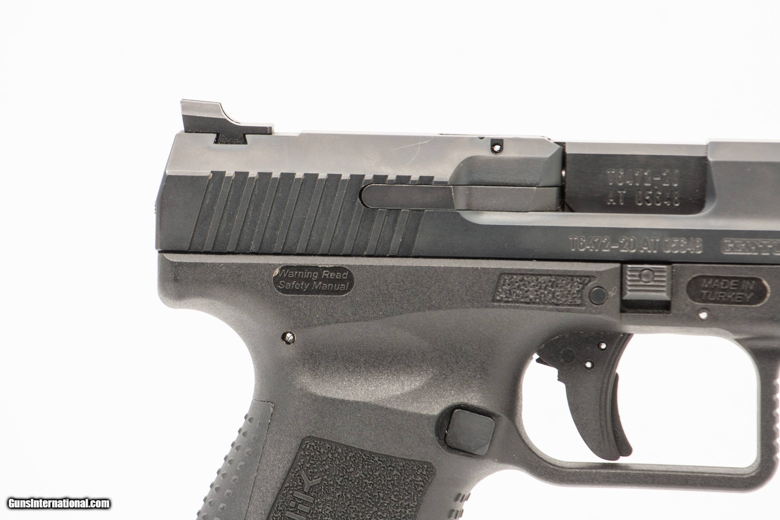 Canik TP9SF chambered for 9mm with a 4 1/2 inch barrel with a bright and shiny bore with a case. This firearm is in excellent condition and is covered by Dury's Lifetime Warranty.