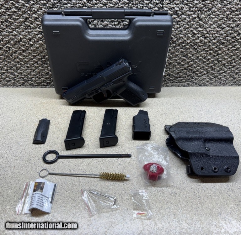 Description: Guns Listing ID: 498982 This listing is for a USED Canik TP9SF Elite 9mm Black Finish Warren/Fiber Optic Sight 4.19\" BBL 15+1. This is a used gun, it has been fired and will have residue present. This Canik TP9SF Elite is chambered in 9mm, and it will hold 15 rounds in the magazine. This pistol comes with a 4.19 inch barrel. It comes equipped with a fiber optic front sight, and a fixed Warren rear sight. There are a few light scratches on the slide. There is some sticky residue on one of the holster’s belt clips. The action appears to be in good condition, the finish appears to be in good condition, and the bore appears to be in good condition. One of the magazines is marked as a 10 round magazine, but the center has been drilled out making it a 15 round magazine. This pistol comes with two 15 round magazines, an extra backstrap, a cleaning rod/brush, a trigger lock, a speed loader, an OWB Canik holster, and the hard case. This would be a great concealed carry or plinking pistol. ** DISCLAIMER** THIS FIREARM HAS NOT BEEN TEST FIRED*** SOLD Manufacturer: CANIK Model: TP9SF ELITE Caliber Info: 9MM LUGER (9X19 PARA) Condition: Used - Non-Certified Barrels: 4.19 BARREL Action: SEMI AUTOMATIC Finish: BLACK |