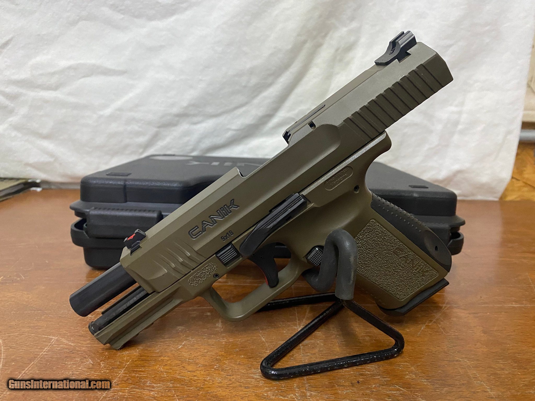 Description: Guns Listing ID: 489413 TP9 SF Elite is the medium-sized model of the TP Series, having a magazine capacity of 15 rounds. Has 3 magazines and original case. SOLD Manufacturer: CANIK Model: TP9SF ELITE Caliber Info: 9MM LUGER (9x19 PARA) Condition: Used - Non-Certified Barrels: 4 BARREL Finish: od green |