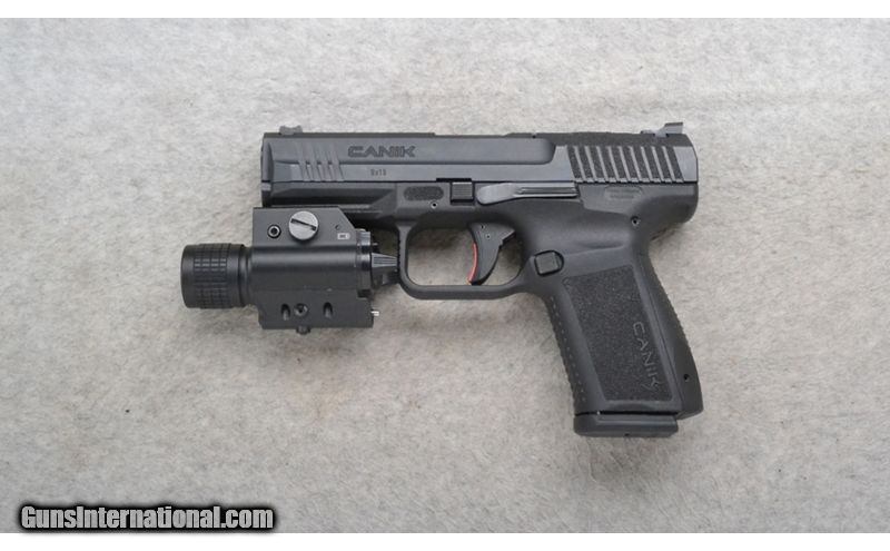 Description: This Canik is a right hand semi-auto pistol in 9mm Cal. It has a 4 inch barrel with a front and rear serrated slide. A red high visibility front sight and notch rear sight. It is outfitted with a white LED light with a red laser. The grip is a textured black polymer. It has a lower accessory rail and loaded chamber indicator. 9mm Parabellum SOLD Chambers: Various count magazines. Metal Condition: Very Good. Bore Condition: Excellent. Barrels: 4 inch barrel with a front and rear serrated slide. Weight: 34 oz. Sights: Red high visibility front. Notch rear. White LED light with a red laser sight. Item Location: Richfield, WI |
