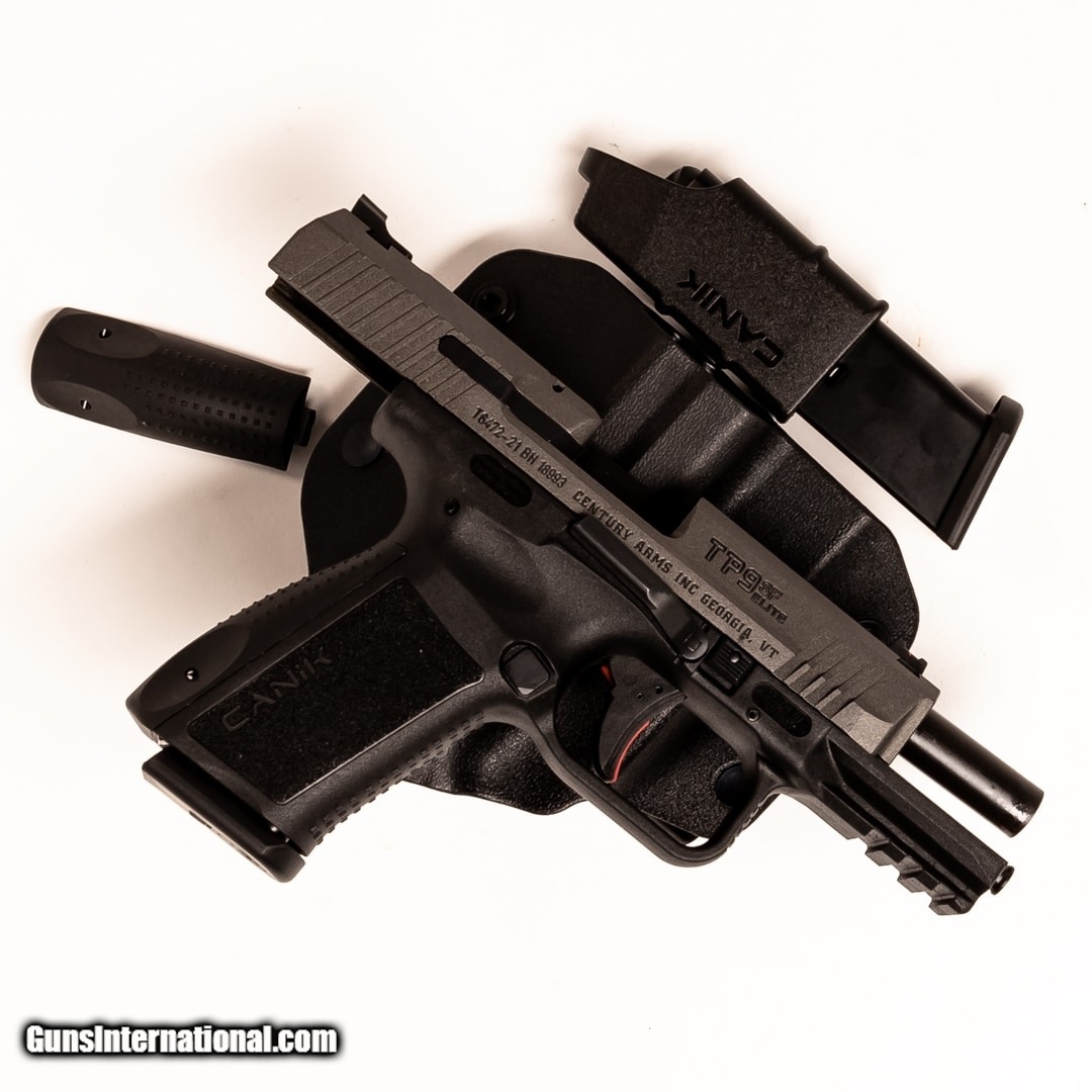 Description: Guns Listing ID: 628742 This Canik TP9SF Elite is a semi-automatic handgun equipped with an improved single-action trigger and chambered in 9mm. It is made with a polymer frame, match-grade barrel, and steel slide. The textured polymer grips with checkered front and back straps provide a secure grasp, while an integral rail in front of the trigger guard allows users to attach their choice of accessories. Other features of the TP9SF Elite include a striker status indicator, loaded chamber indicator, and a reversible magazine catch. This TPSF Elite includes the original case, manual, two 10-round magazines, loader, and a right-handed OWB Canik holster. SOLD Manufacturer: CANIK Model: TP9SF ELITE Caliber Info: 9MM LUGER (9X19 PARA) Condition: Used - Certified Barrels: 4.20 barrel Finish: TUNGSTEN |