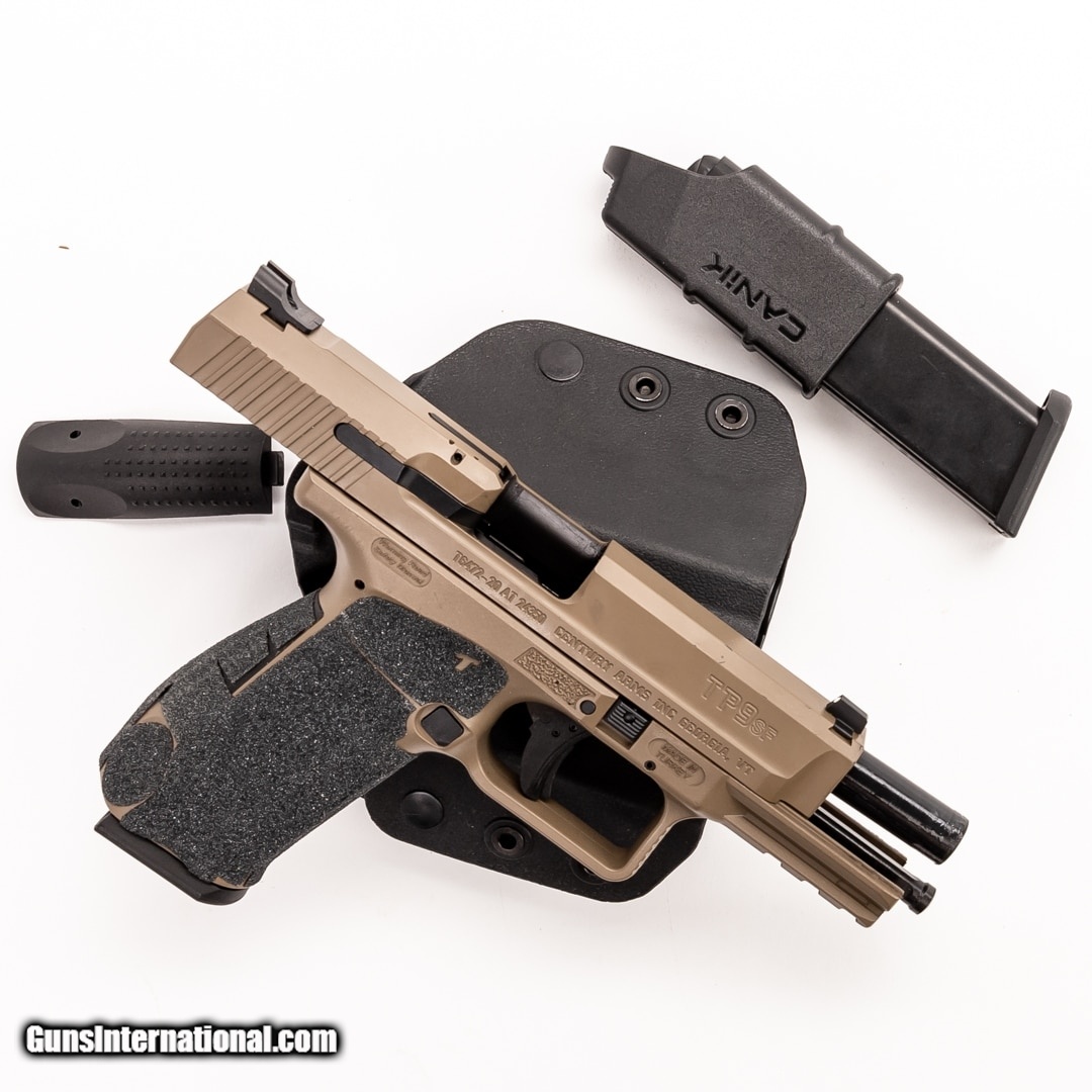 Description: Guns Listing ID: 365567 The Canik TP9SF is a modern semi-automatic handgun designed for tactical applications and self-defense. It has a match-grade barrel, accessory rail, textured grips, and a wide variety of other features as well. The finish is Cerakote over phosphate for improved corrosion resistance, giving you a reliable handgun no matter how adverse the weather conditions are. With this purchase you will receive 2 X 18 round magazines, a spare recoil spring, right hand OWB holster, the original case, and a manual. Talon grip wrap installed. SOLD Manufacturer: CANIK Model: TP9SF Condition: Used - Certified Barrels: 4.5 BARREL Gauge Info: 9MM LUGER Finish: FDE |