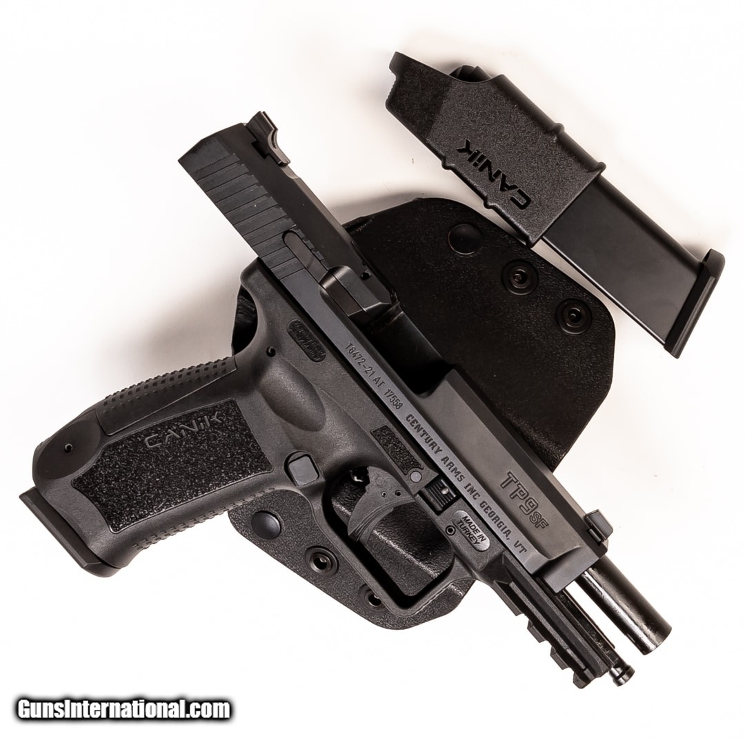 Description: Guns Listing ID: 426932 This Canik TP9 SF is a modern semi-automatic handgun designed for tactical applications and self-defense. It has a match-grade barrel, accessory rail, textured grips, and a wide variety of other features. The finish is Cerakote over phosphate for improved corrosion resistance, giving you a reliable handgun no matter how adverse the weather conditions. This TP9 SF includes two 18-round magazines. SOLD Manufacturer: CANIK Model: TP9SF Caliber Info: 9MM LUGER (9X19 PARA) Condition: Used - Certified Barrels: 4.5 BARREL Finish: BLACK |