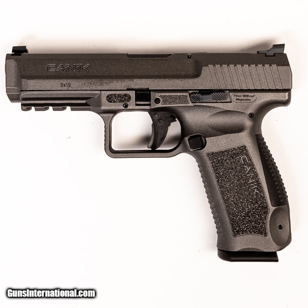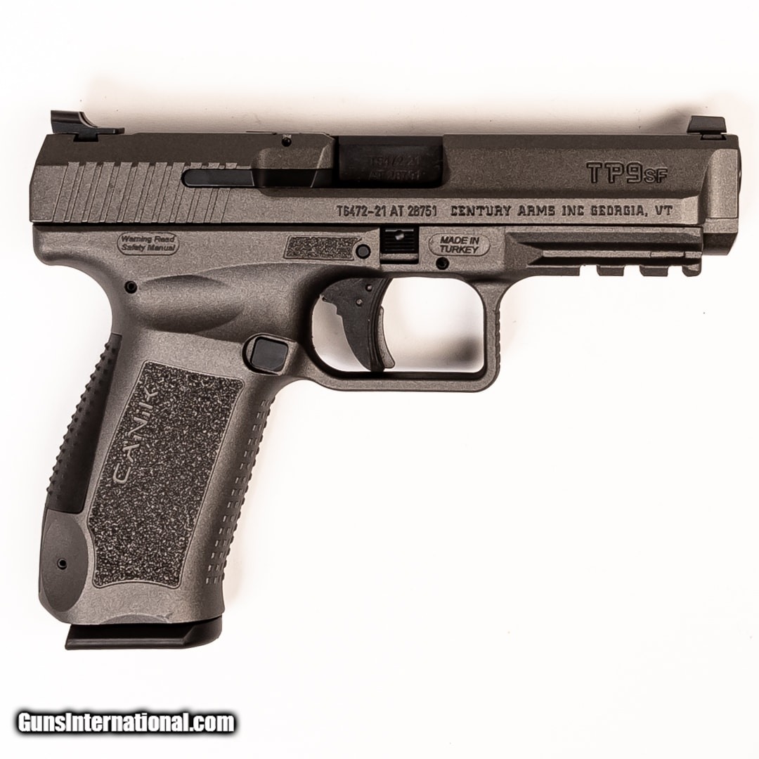 Description: Guns Listing ID: 522036 This Canik TP9 SF is a modern semi-automatic handgun designed for tactical applications and self-defense. It has a match-grade barrel, accessory rail, textured grips, and a wide variety of other features. The finish is Cerakote over phosphate for improved corrosion resistance, giving you a reliable handgun no matter how adverse the weather conditions. This TP9 SF has white dot and Warren back sights and an under-barrel rail. Purchase includes the original case, manual, two 18-round magazines, and a spare grip. SOLD Manufacturer: CANIK Model: TP9SF Caliber Info: 9MM LUGER (9X19 PARA) Condition: Used - Certified Barrels: 4.5 BARREL Finish: BLACK |