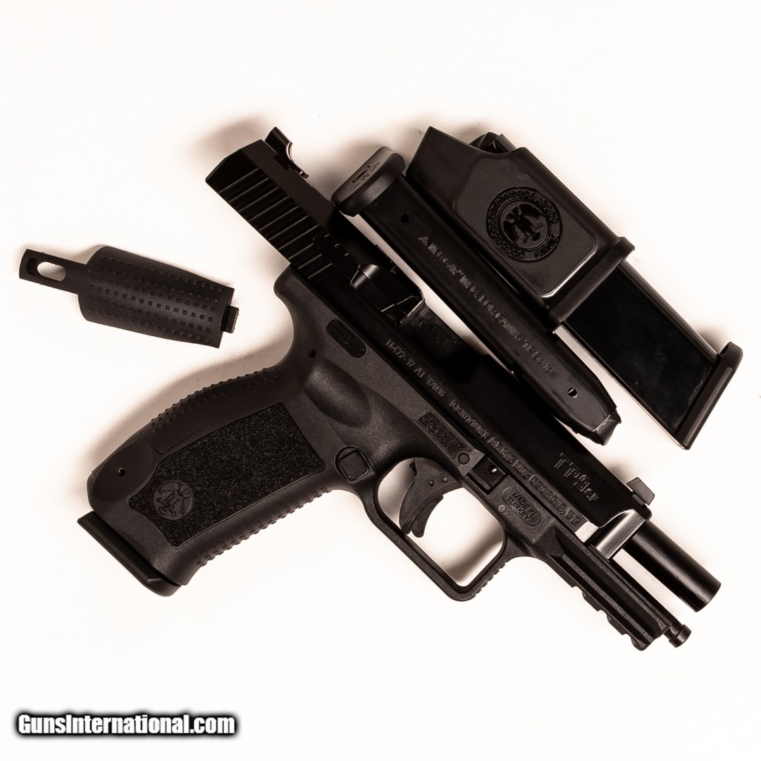 Description: Guns Listing ID: 635433 This Canik TP9 SF is a modern handgun designed for tactical applications and self-defense. It has a match-grade barrel, accessory rail, textured grips, and a wide variety of other features. The finish offers improved corrosion resistance, giving you a reliable handgun no matter how adverse the weather conditions. This TP9 SF comes with the original case, manual, two 10-round magazines, one 18-round magazine, loader, two sizes of backstraps, right-handed OWB holster, and a right-handed IWB We the People holster. SOLD Manufacturer: CANIK Model: TP9SF Caliber Info: 9MM LUGER (9X19 PARA) Condition: Used - Certified Barrels: 4.5 barrel Finish: BLACK |