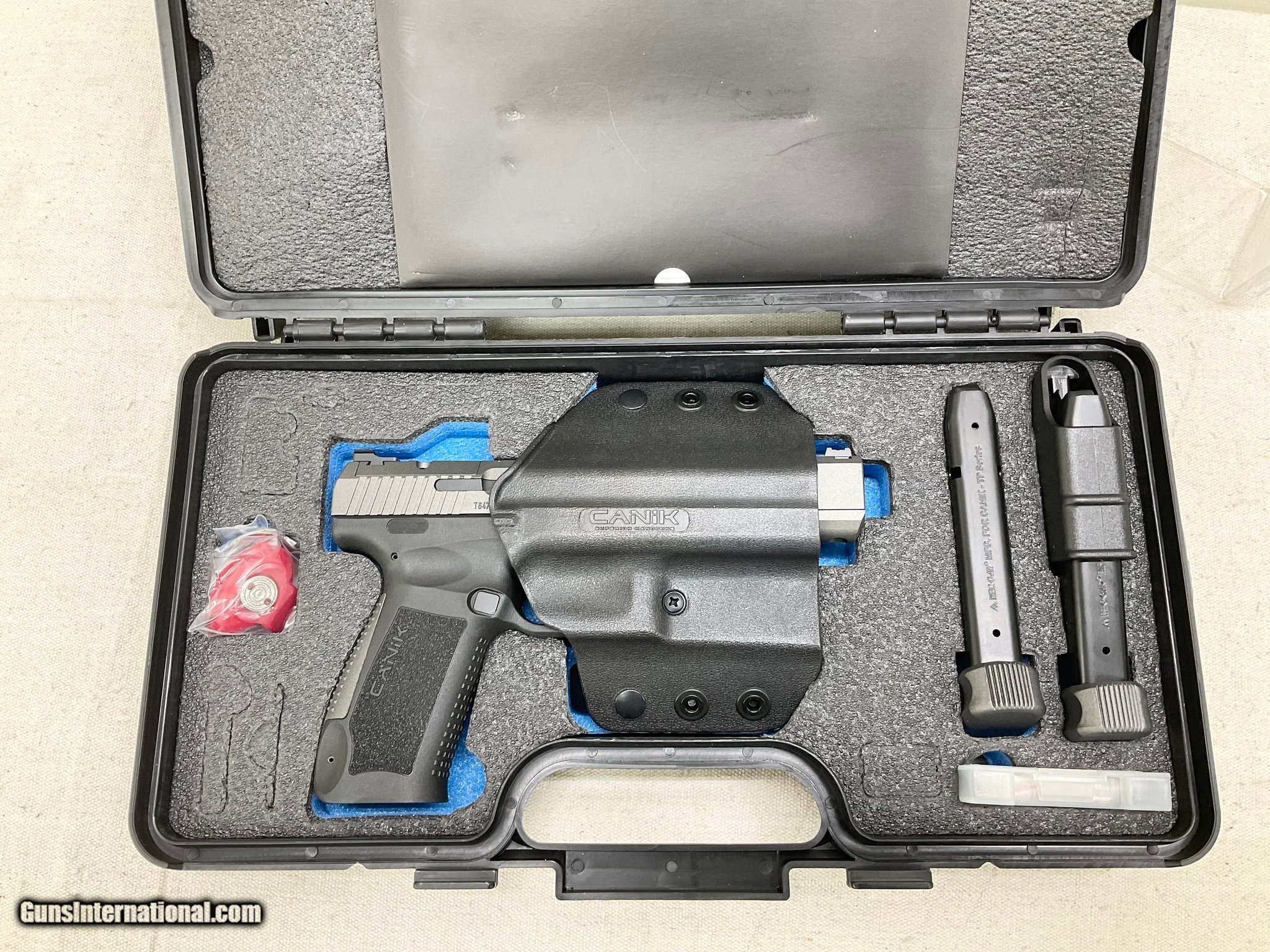 Description: Guns Listing ID: 555398 Canik TP9SFX chambered in 9x19mm. Includes factory box with MOS plates, speed loader, holster, two 18rd magazines, and manuals. See photos for condition. SOLD Manufacturer: CANIK Model: TP9SFx Caliber Info: 9MM LUGER (9X19 PARA) Condition: Used - Non-Certified Barrels: 5.2" BARREL Action: STRIKER FIRED Finish: BLACK Weight: 1.8 LBS. |