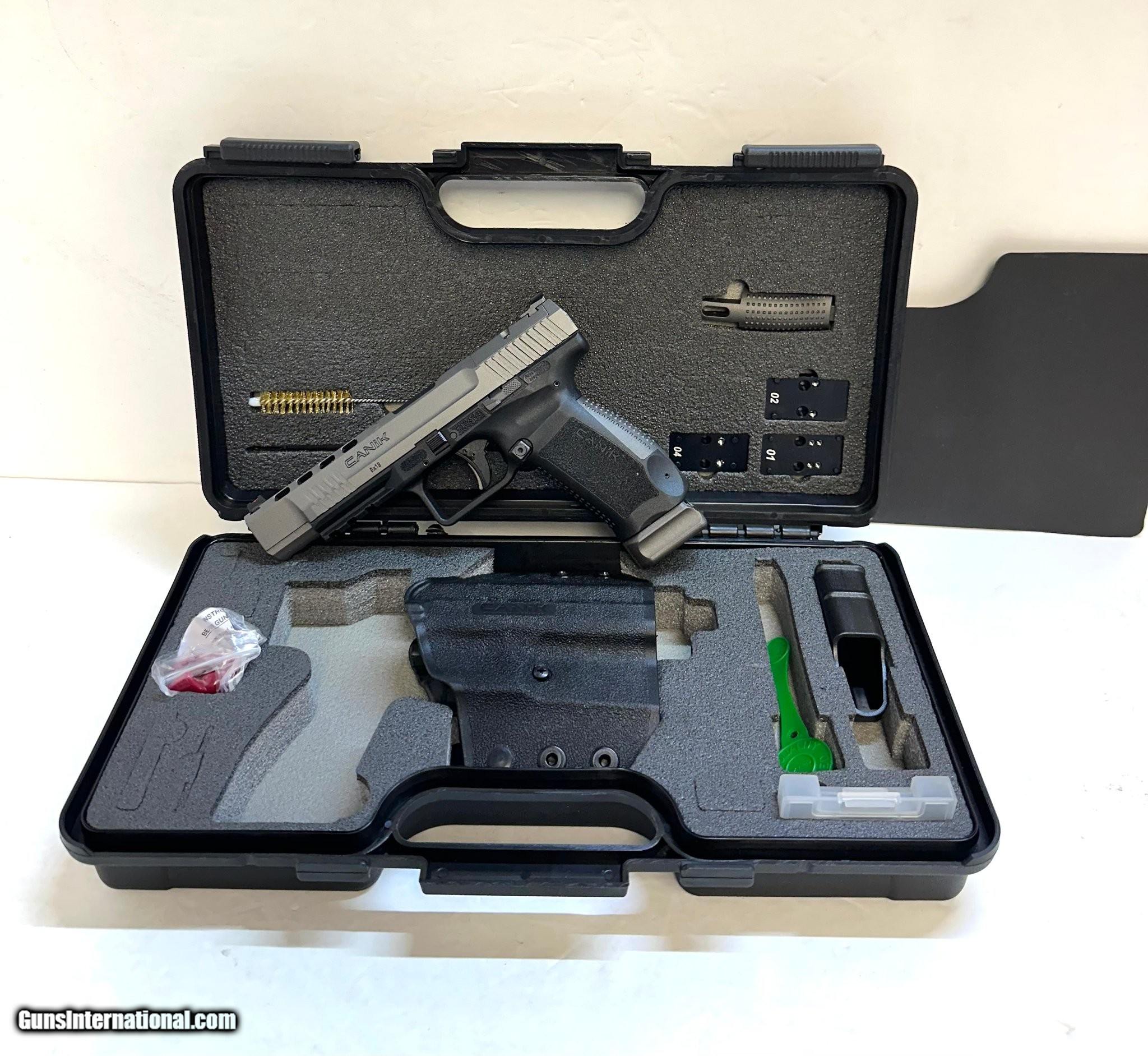 Description: Guns Listing ID: 571126 This pre-owned Canik TP9SFX is a high-performance, competition-ready 9mm pistol known for its exceptional value, accuracy, and reliability. Designed with input from professional shooters, the TP9SFX features a 5.2\" match-grade barrel, lightened slide for reduced recoil, and a crisp single-action trigger with a short reset. The slide comes pre-cut for optics and includes multiple mounting plates, making it red-dot ready out of the box. The fiber optic front sight and adjustable rear sight provide excellent target acquisition. The pistol also includes ambidextrous controls and a reversible magazine release for user customization. It‚s in good condition with normal cosmetic wear. With 1 magazine, holster, and case I #0191451 UEM EM SOLD Manufacturer: CANIK Model: TP9SFx Caliber Info: 9MM LUGER (9X19 PARA) Condition: Used - Non-Certified Barrels: 5.2" BARREL Action: STRIKER FIRED Finish: BLACK Weight: 1.8 LBS. |
