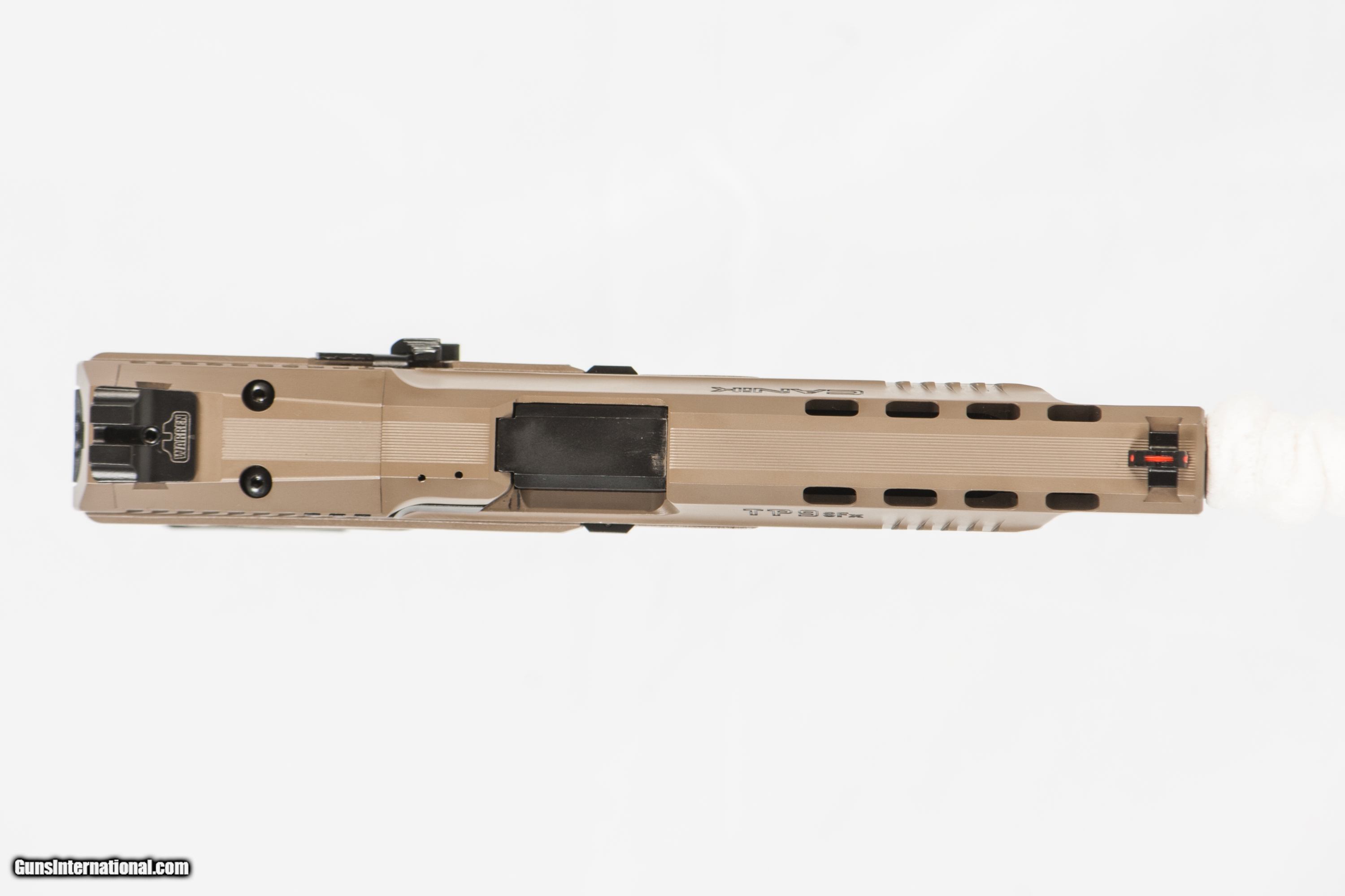 Canik TP9SFX chambered in 9mm with a 5 1/4 inch barrel with a bright and shiny bore original case 1 extra magazine Vortex micro dot optic and a holster. This firearm is in excellent condition and is covered by Dury's Lifetime Warranty.