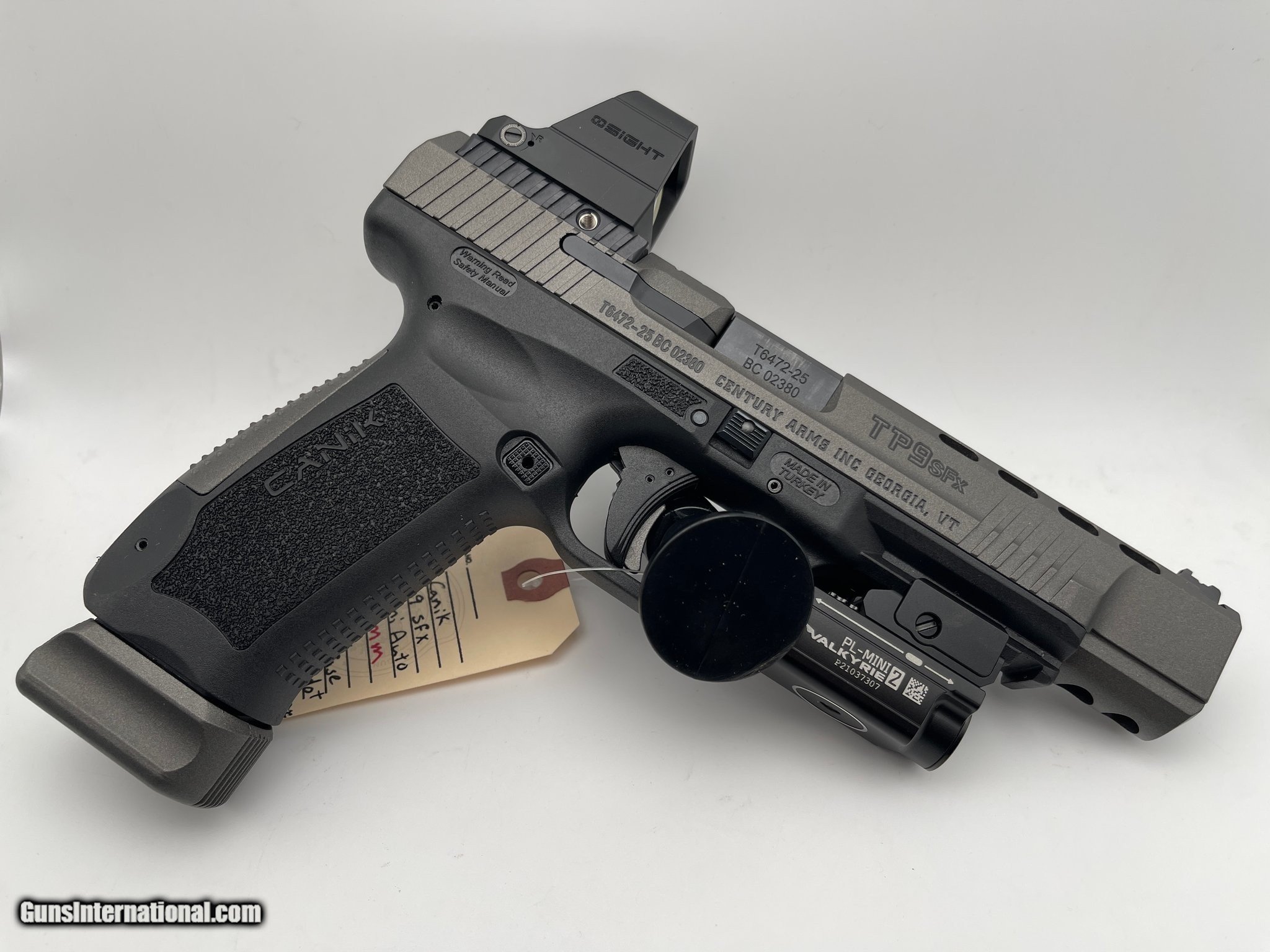 Description: Guns Listing ID: 614315 UP FOR SALE TODAY WE HAVE A CANIK TP9sf PISTOL. THIS PISTOL IS CHAMBERED IN 9MM LUGER AND HAS A 5\" BARREL. INCLUDED WITH THE GUN IS AN OSIGHT RED DOT OPTIC AND OLIGHT VALKYRIE PL-MINI 2 LIGHT. ALSO INCLUDED SI THE FACORTY CASE AND 2 MAGS. OVERALL, THE PISTOL IS IN EXCELLENT CONDITION WITH MINIMAL SIGNS OF BEING SHOT. Manufacturer: CANIK Model: TP9SFx W/ VORTEX VIPER RED DOT Caliber Info: 9MM LUGER (9X19 PARA) Condition: Used - Non-Certified Barrels: 5.2" BARREL Action: SEMI AUTOMATIC Finish: BLACK Weight: 1.9 lbs. Price: $499.99 Contact Seller |