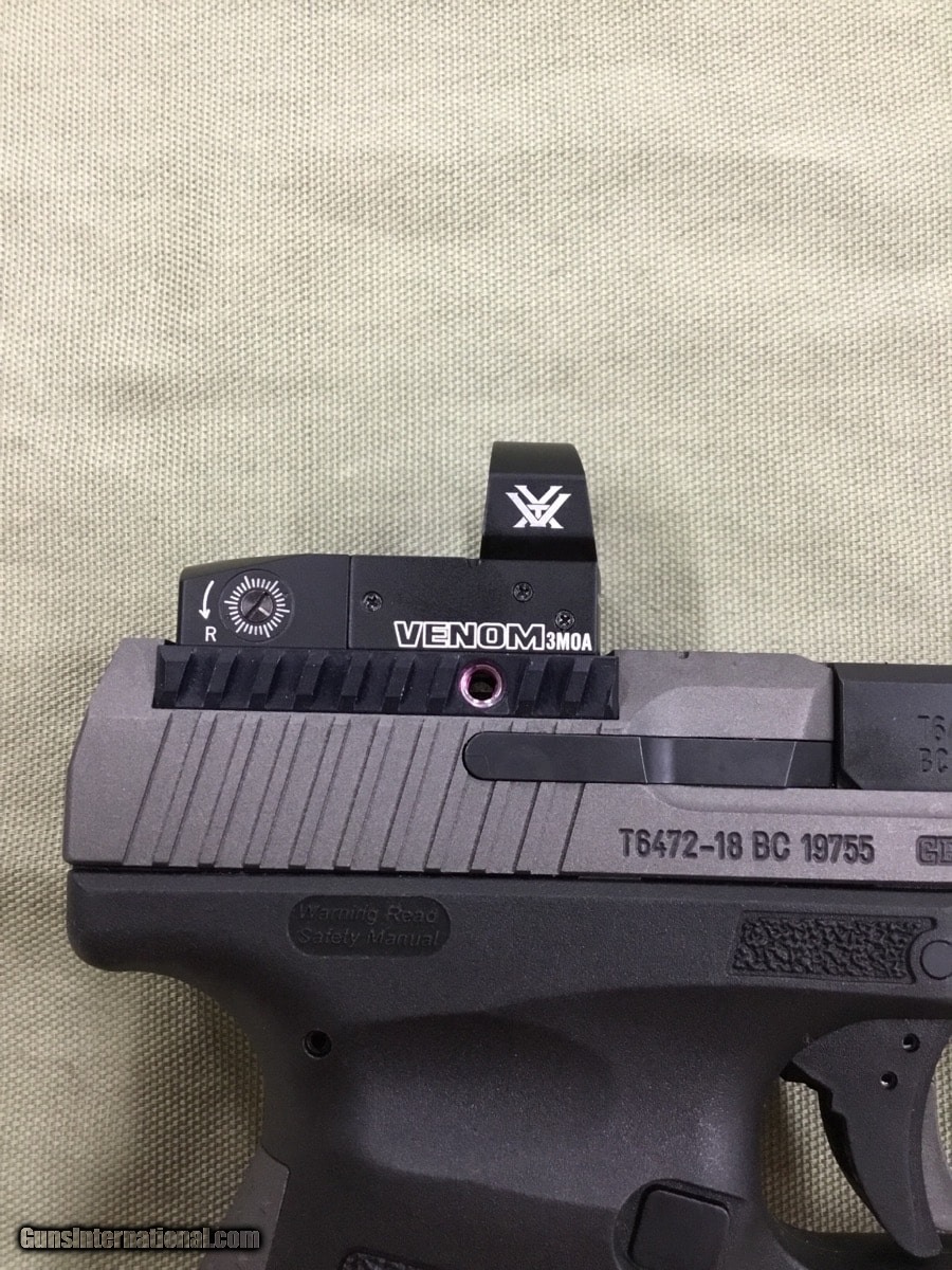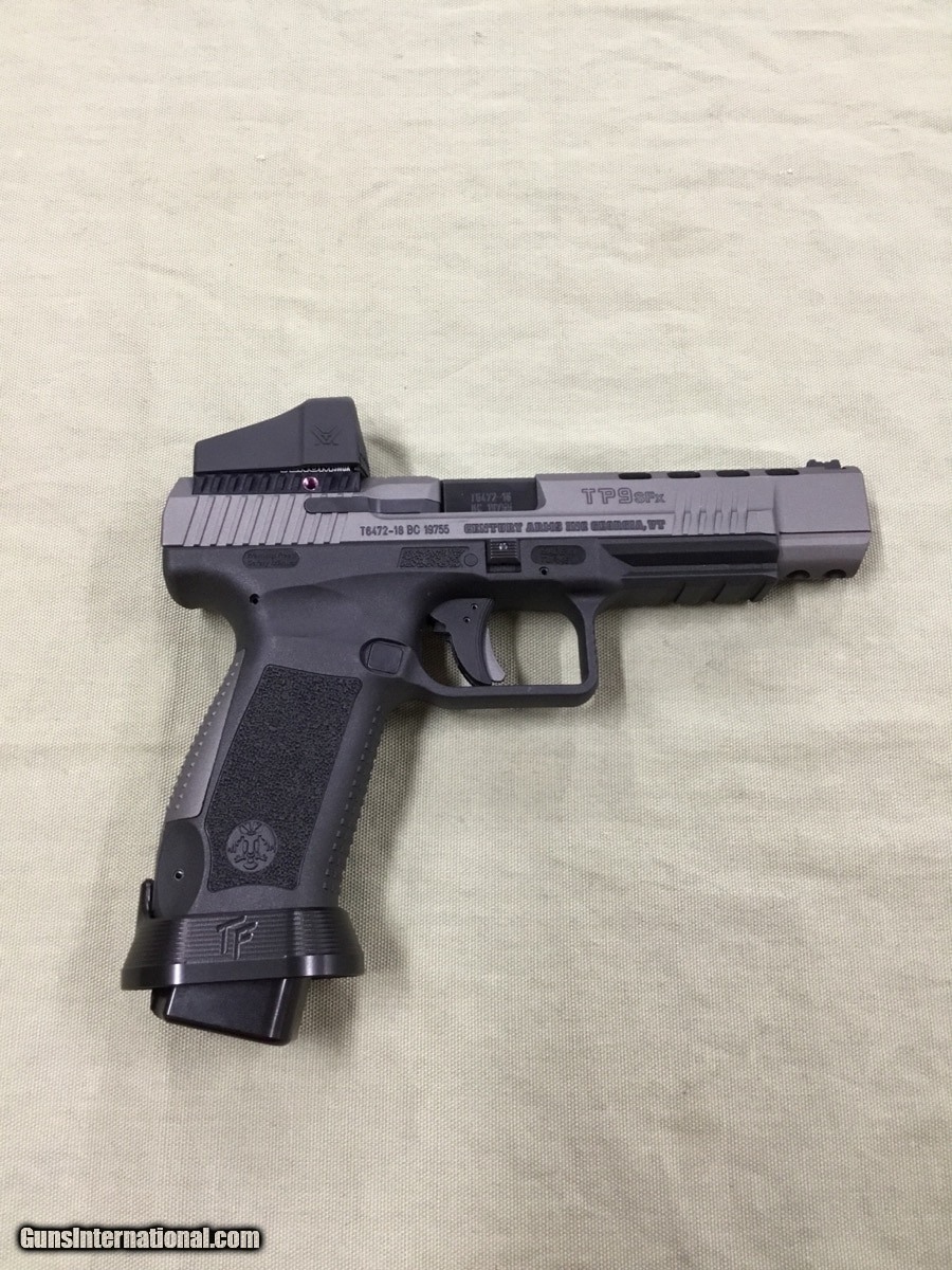 Description: Guns Listing ID: 410262 Inventory Number: FCS054558 Description: PISTOL: CENTURY ARMS INC. - C.A.I. MODEL CANIK TP9SFX, NOT SPECIFIED, NOT INCLUDED, 5, SEMI - AUTOMATIC, 9X19MM, INCLUDES VORTEX VENOM 3MOA SIGHT Specific Details: NRA Modern Gun Condition Rating Standards: EXCELLENT: New condition, used but little, no noticeable marring of wood or metal, bluing perfect, (except at muzzle or sharp edges). Finish / Color: Not Specified Case & Box: No - Not Included Action: Semi - Automatic Caliber: 9X19MM Magazine: Yes Holster: No - Not Included SOLD Manufacturer: CANIK Model: TP9SFX Caliber Info: 9 MM LUGER Condition: Used - Non-Certified Barrels: 5 BARREL Finish: TWO-TONE |