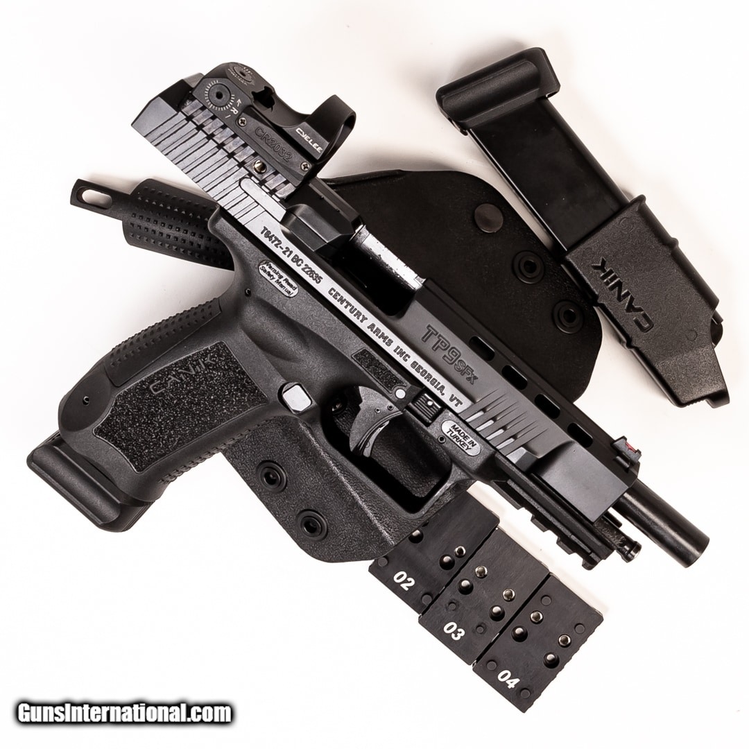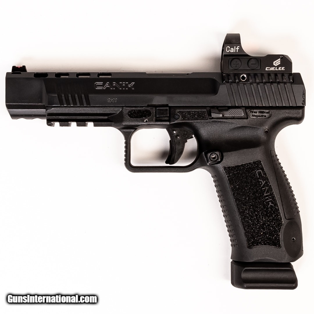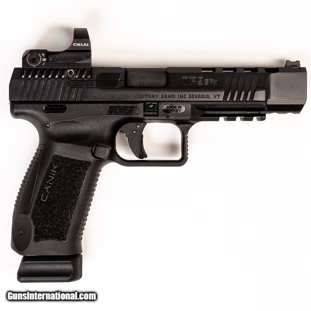 Description: Guns Listing ID: 469130 The Canik TP9SFX is a competition-ready pistol that boasts a wide variety of features that are hard to find in factory handguns. It comes with Warren Tactical Red/Green fiber optic sights, a removable red dot cover, 4 red dot interface plates, a match-grade barrel, an improved single-action trigger, slide lightening cuts, forward slide serrations, an extended slide release, ambi cocking lever, and an adjustable length reversible magazine release. Needless to say, if you‚‚re looking for a budget friendly handgun that was designed to perform, it doesn‚‚t get any better than the Canik TP9SFX. This handgun includes a Cyelee shake awake red dot, two 19-round magazines, and a Canik OWB right-handed holste SOLD Manufacturer: CANIK Model: TP9SFX Caliber Info: 9MM LUGER (9X19 PARA) Condition: Used - Certified Barrels: 5.2 BARREL Finish: BLACK |
