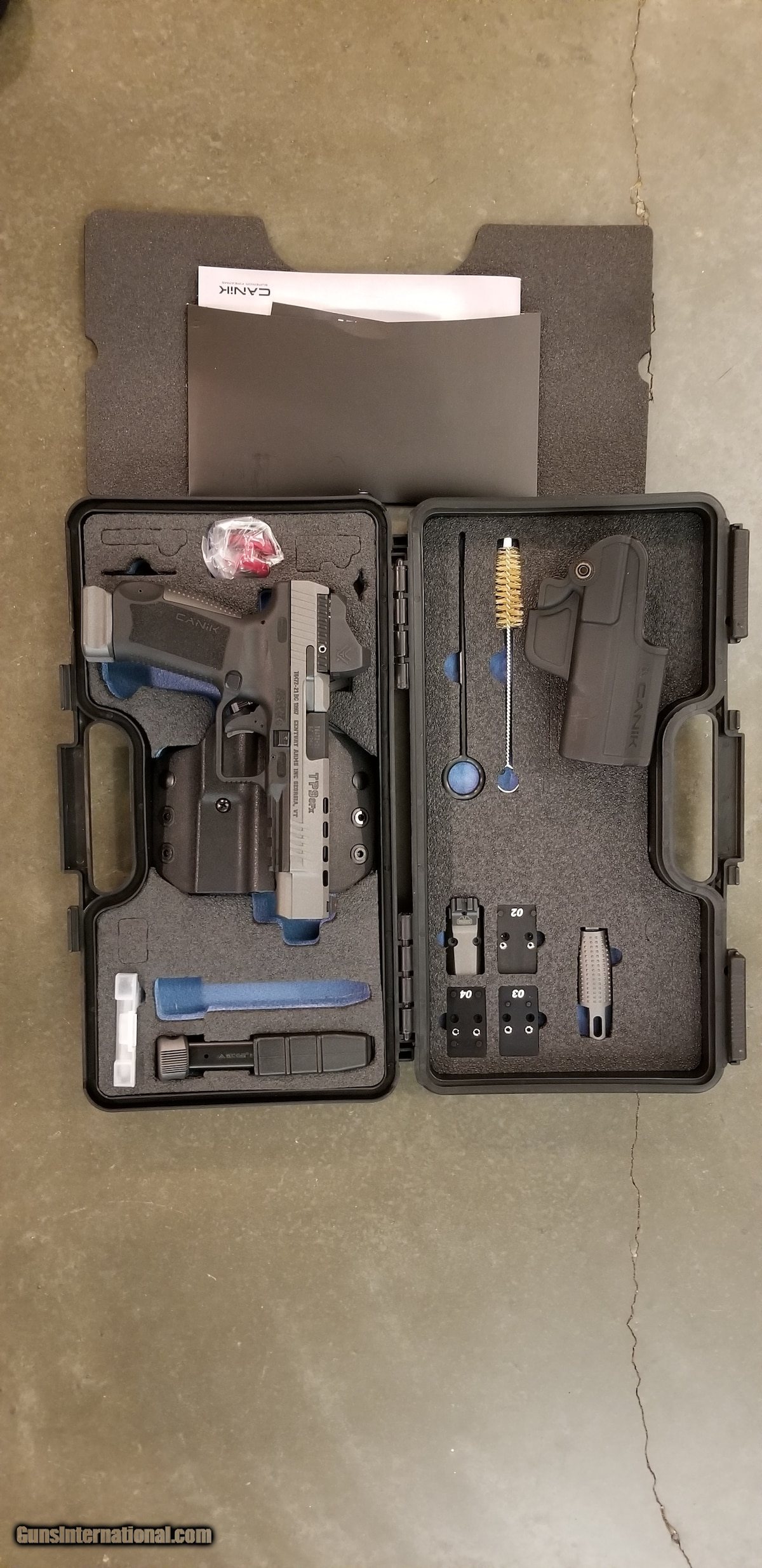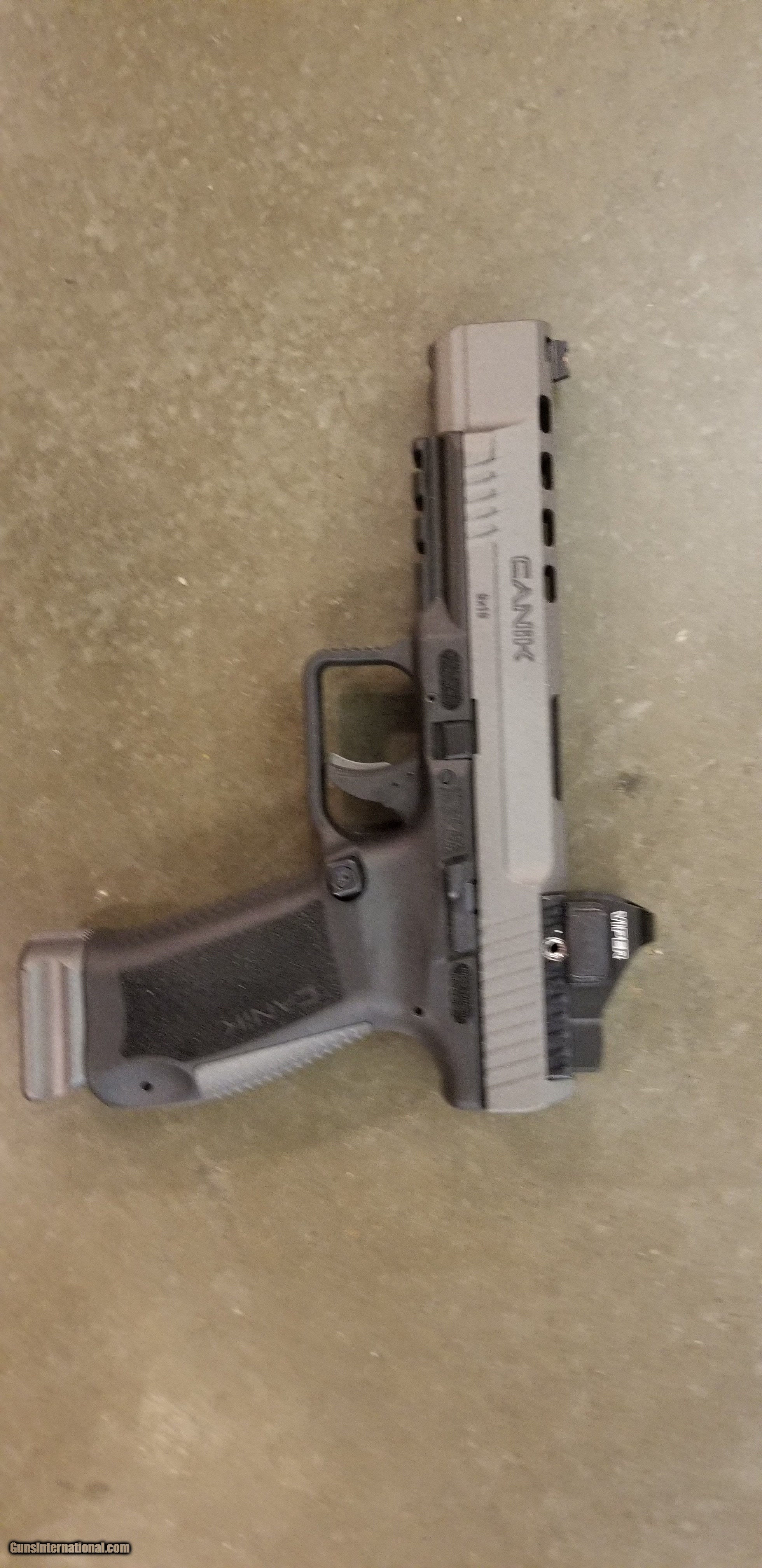 Description: Guns Listing ID: 550956 Canik TP9SFX in nearly new condition (USED) comes with 2 Canik holsters, Vortex Viper, all optic mounting plates and all other factory equipment. Includes: NEW Patented Retention Holster NEW Barrel and slide have an ultra-durable Tungsten-Grey Cerakote®-over-Nitride on the colored models Short reset Single-Action trigger design with nickel-coated action components Optics-ready slide with four adapter plates that accept the markets most popular reflex sights, plus an ambidextrous charging handle Warren Tactical sights with red and green fiber optic front sight Weight-reducing front and rear slide serrations for positive-traction handling Accessory under-barrel rail Extended slide release for easier engagement during competition Loaded chamber indicator Side reversible magazine catch with additional sizes of release buttons and alternate backstraps for a custom fit Two magazines, magazine loader, and cleaning kit Available with 20-round or 10-round magazines and a Vortex reflex sight WEIGHT 1.83 lbs CAPACITY 20+1 rounds FRONT SIGHT Fiber Optic CARTRIDGE 9mm Luger MAGAZINE TYPE Canik Full Size Magazine REAR SIGHT Blackout MAGAZINE INCLUDED 2 x 20-Round Magazine FINISH COLOR Tungsten Grey ACTION TYPE Semi-Automatic FRAME MATERIAL Synthetic OVERALL LENGTH 8.27\" BARREL LENGTH 5.2\" HEIGHT 6.2\" WIDTH 1.38\" MANUFACTURED Made in Turkey SOLD Manufacturer: CANIK Model: TP9SFx Caliber Info: 9MM LUGER (9X19 PARA) Condition: Used - Non-Certified Barrels: 5.2 BARREL Finish: GREY & BLACK |