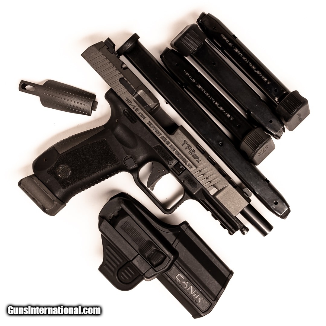 Description: Guns Listing ID: 638801 The Canik TP9SFX is a competition-ready pistol that boasts a wide variety of features that are hard to find in factory handguns. If you‚‚re looking for a budget-friendly handgun designed to perform, it doesn‚‚t get any better than the Canik TP9SFX! This TP9SFX includes the original case, four 20-round magazines, one 30-round magazine, two sizes of backstraps, optic plates, tool kit, and a right-handed OWB Canik Level II holste SOLD Manufacturer: CANIK Model: TP9SFX Caliber Info: 9MM LUGER (9X19 PARA) Condition: Used - Certified Barrels: 5.2 barrel Finish: TWO-TONE |