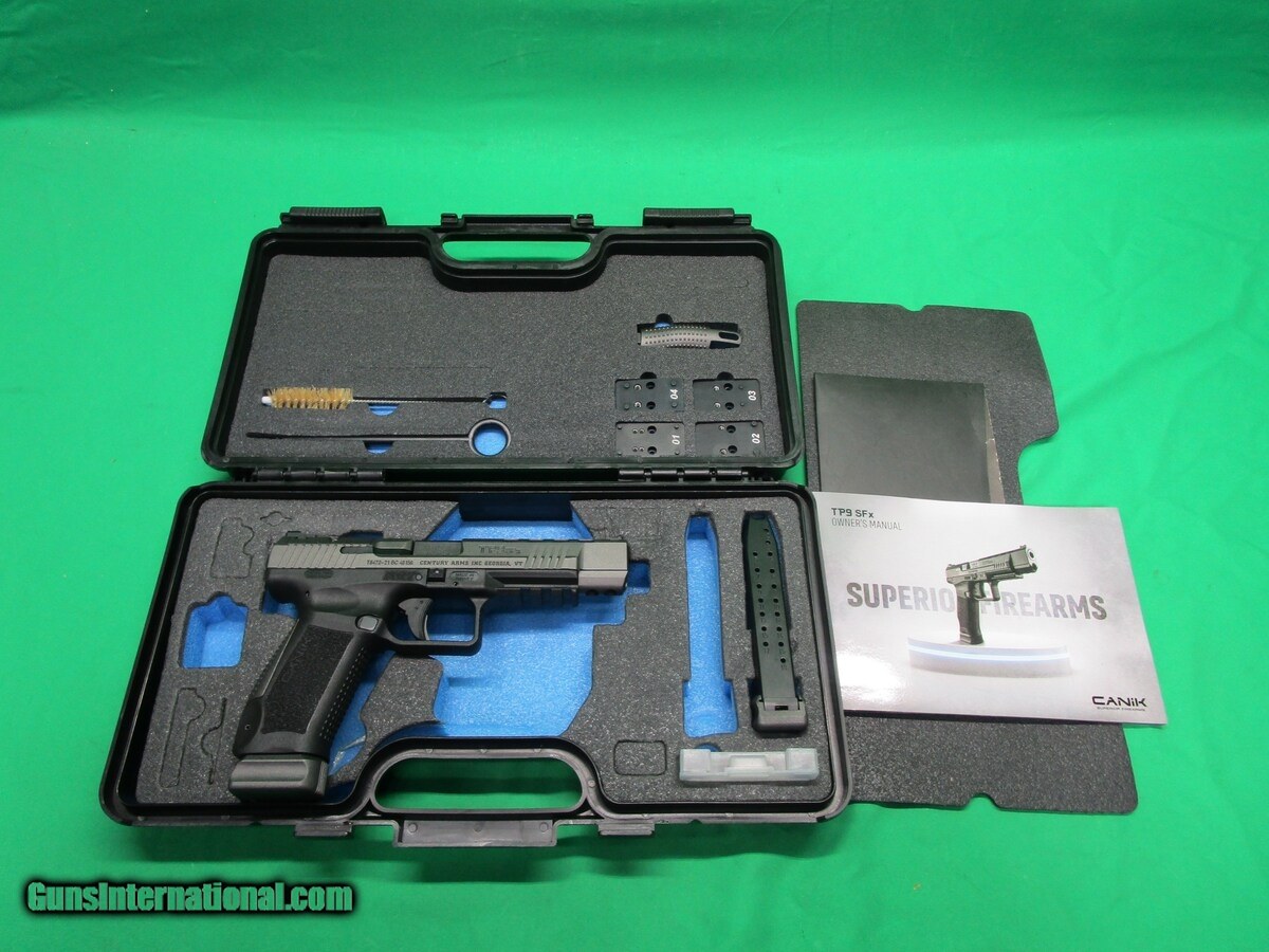 Description: Guns Listing ID: 695116 We have a used Canik TP9SFX semi-automatic pistol for sale. This is chambered in 9mm with a 5\" barrel. It comes as shown in pictures with four optic mounting plates, two 18 round magazines, back straps, cleaning tools, manual, and factory case. This is in Very Good Used Condition. Overall we would grade at approx 98%. Check out the pictures and feel free to call or email with any questions. SOLD Manufacturer: CANIK Model: TP9SFX Caliber Info: 9MM Condition: Used - Non-Certified Barrels: 5 BARREL Finish: TUNGSTEN CERAKOTE |