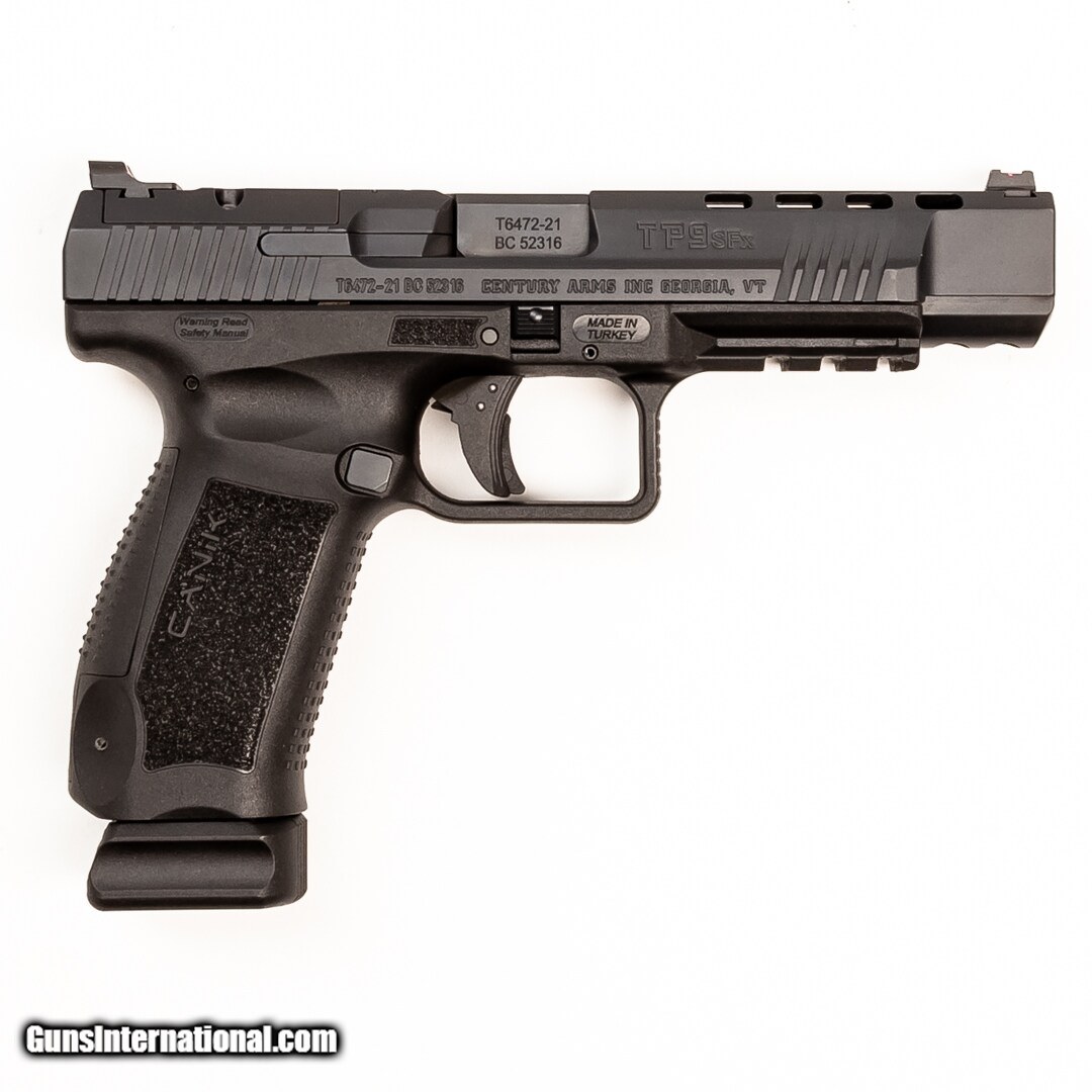 Description: Guns Listing ID: 875498 The Century Arms / Canik TP9SFX is a competition-ready pistol that boasts a wide variety of features that are hard to find in factory handguns. It comes with optic mounting plates, a match-grade barrel, an improved single-action trigger, slide lightening cuts, forward slide serrations, an extended slide release, and an adjustable length reversible magazine release. Needless to say, if you’re looking for a budget friendly handgun that was designed to perform, it doesn’t get any better than the Canik TP9SFX. This handgun features four 20-round magazines, a right-handed IWB holster, the case with the manual, and backstraps. Get the best bang for your buck when you get a Certified Used Firearm . When you see the Certified Used stamp on any of our firearms, you can be confident that you’re getting exactly what you want – a gun only in very good to excellent condition and held to the highest quality standard. All Certified Used Guns come with a ‘no questions asked’ return policy . PLUS, ALL CERTIFIED USED GUNS SHIP FREE! SOLD Manufacturer: CANIK Model: TP9SFX Caliber Info: 9MM LUGER (9X19 PARA) Condition: Used - Certified Barrels: 5 BARREL Finish: BLACK |