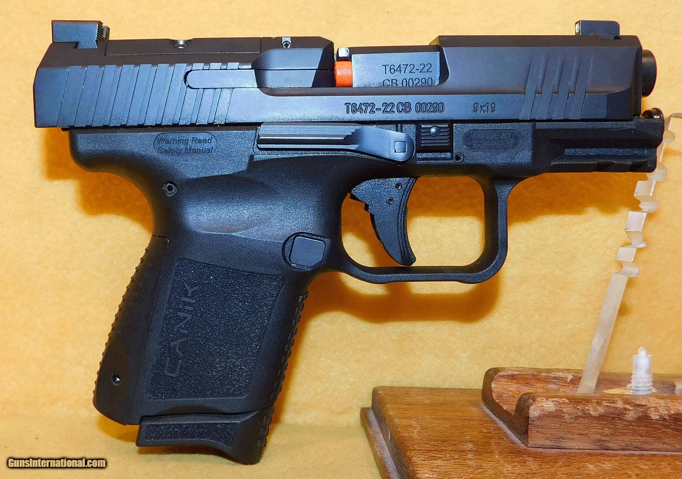 Description: CANIK TPSC ELITE IN 9MM CAL., WITH BARREL. COLOR MATTE. CONDITION 98% LIKE NEW UNFIRED. SERIAL NUMBER 22CB00290. CANIK MODEL TPSC ELITE (UNFIRED) IN 9MM CALIBER, COMES WITH TWO TEN ROUND FACTORY MAGAZINES HOLLISTER WITH HARD CASE, PAPERS, ALL ACCESSORIES 98% UNFIRED OVERALL CONDITION, OUR STOCK # D4213 SOLD |