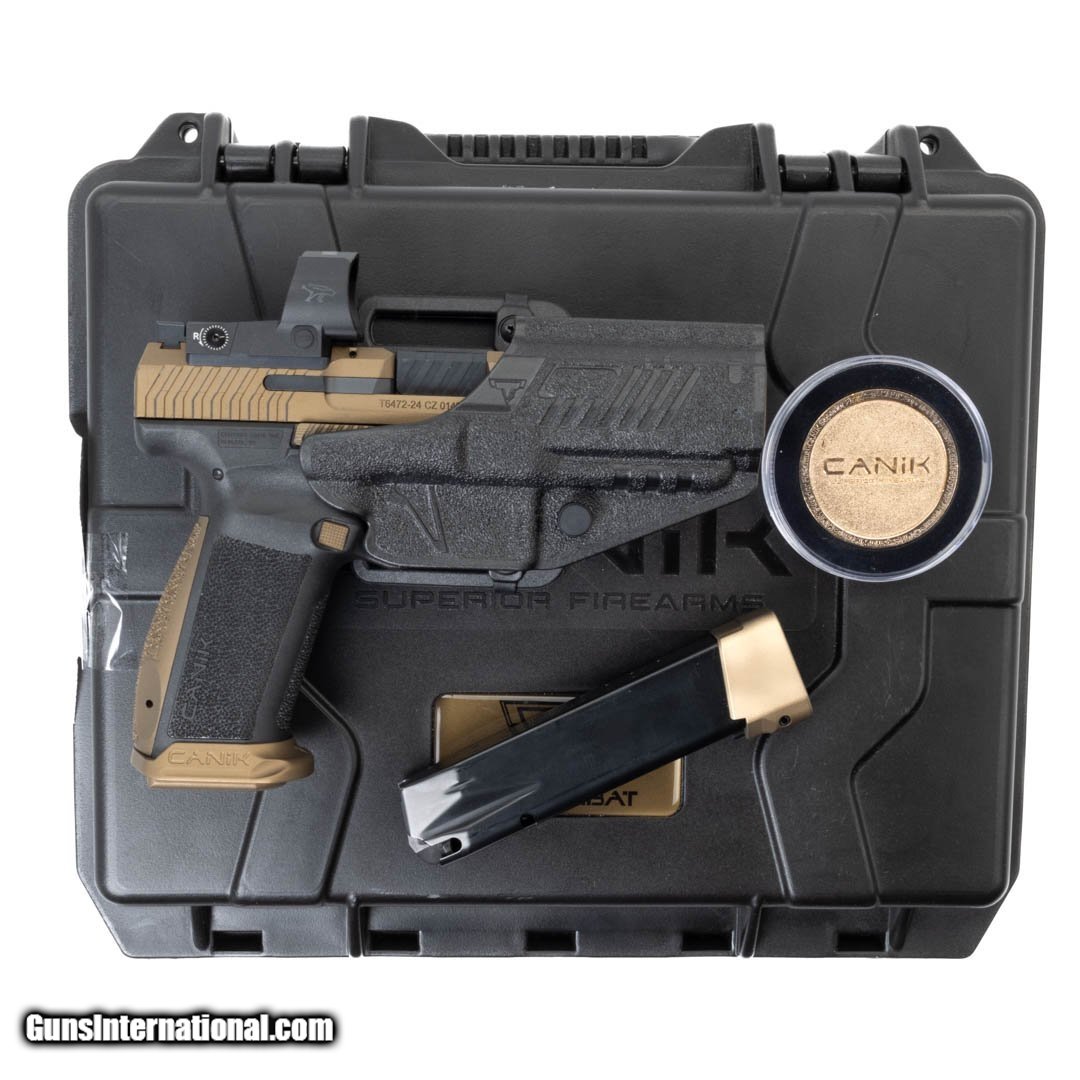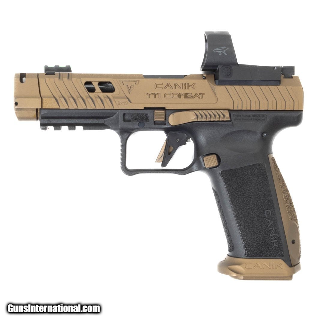 Description: Guns Listing ID: 514170 This Canik TTI Combat features a ported barrel, an extended mag well, an accessory rail, a green fiber optic front sight, and a Mecanik red dot sight. Purchase includes the original case, manual, two 18-round magazines, two extra backstraps, an extra recoil spring, cleaning tools, a Canik/Taran Tactical coin, and a right-handed OWB Kydex-type holster. Get the best bang for your buck when you get a Certified Used Firearm . When you see the Certified Used stamp on any of our firearms, you can be confident that you‚‚re getting exactly what you want – a gun only in very good to excellent condition and held to the highest quality standard. All Certified Used Guns come with a ‚‚no questions asked‚‚ return policy . PLUS, ALL CERTIFIED USED GUNS SHIP FR SOLD Manufacturer: CANIK Model: TTI COMBAT Caliber Info: 9MM LUGER (9x19 PARA) Condition: Used - Certified Barrels: 4.80 Action: SEMI AUTOMATIC Finish: black-and-gold Weight: 2 |