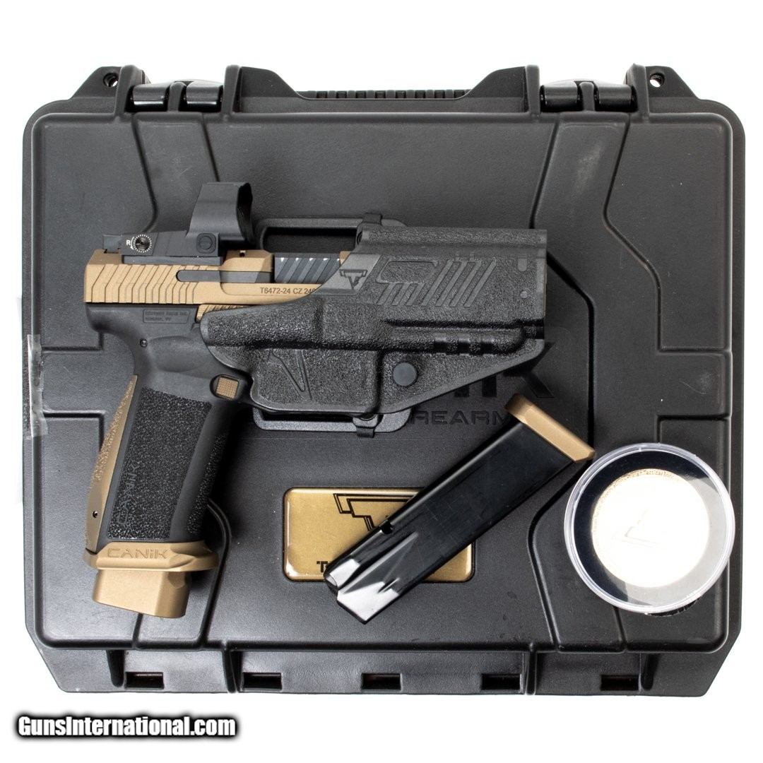 Description: Guns Listing ID: 557236 This Canik comes with one 20-round magazine, one 18-round magazine, the original case, owner‚s manual, a fiber optic front sight, a ported spiral fluted barrel, a flared magwell, an extra recoil spring, extra backstraps, a right hand OWB holster, Canik tools, a challenge coin, and it‚s equipped with a MeCanik M03 Competition red dot optic. Get the best bang for your buck when you get a Certified Used Firearm . When you see the Certified Used stamp on any of our firearms, you can be confident that you‚re getting exactly what you want – a gun only in very good to excellent condition and held to the highest quality standard. All Certified Used Guns come with a ‚no questions asked‚ return policy . SOLD Manufacturer: CANIK Model: TTI COMBAT Caliber Info: 9MM LUGER (9X19 PARA) Condition: Used - Certified Barrels: 4.75 BARREL Action: SEMI AUTOMATIC Finish: burnt bronze/black Weight: 1.4 |