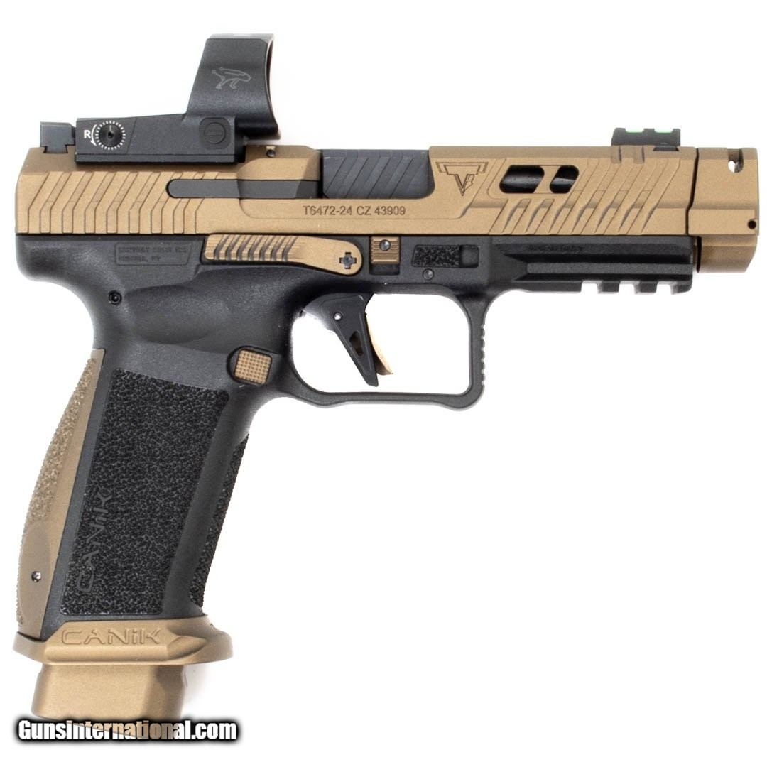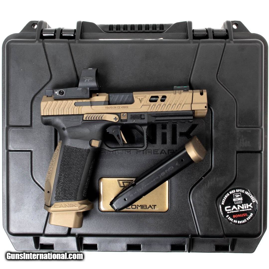 Description: Guns Listing ID: 563161 This Canik TTI Combat features a flared magwell, ported slide, a spiral fluted and ported barrel, a Canik compensator, an iProtec RM230 flashlight, and a Mecanik red dot sight. Purchase includes the original case, owner‚s manual, one 18-round magazine, one 21-round extended magazine (18+3), a mag loader, backstraps, optic plates, a challenge coin, and a right-handed OWB holster. Get the best bang for your buck when you get a Certified Used Firearm . When you see the Certified Used stamp on any of our firearms, you can be confident that you‚re getting exactly what you want – a gun only in very good to excellent condition and held to the highest quality standard. All Certified Used Guns come with a ‚no questions asked‚ return policy . SOLD Manufacturer: CANIK Model: TTI COMBAT Caliber Info: 9MM LUGER (9X19 PARA) Condition: Used - Certified Barrels: 4.60" BARREL Action: SEMI AUTOMATIC Finish: BLACK AND BRONZE Weight: 1.6 |