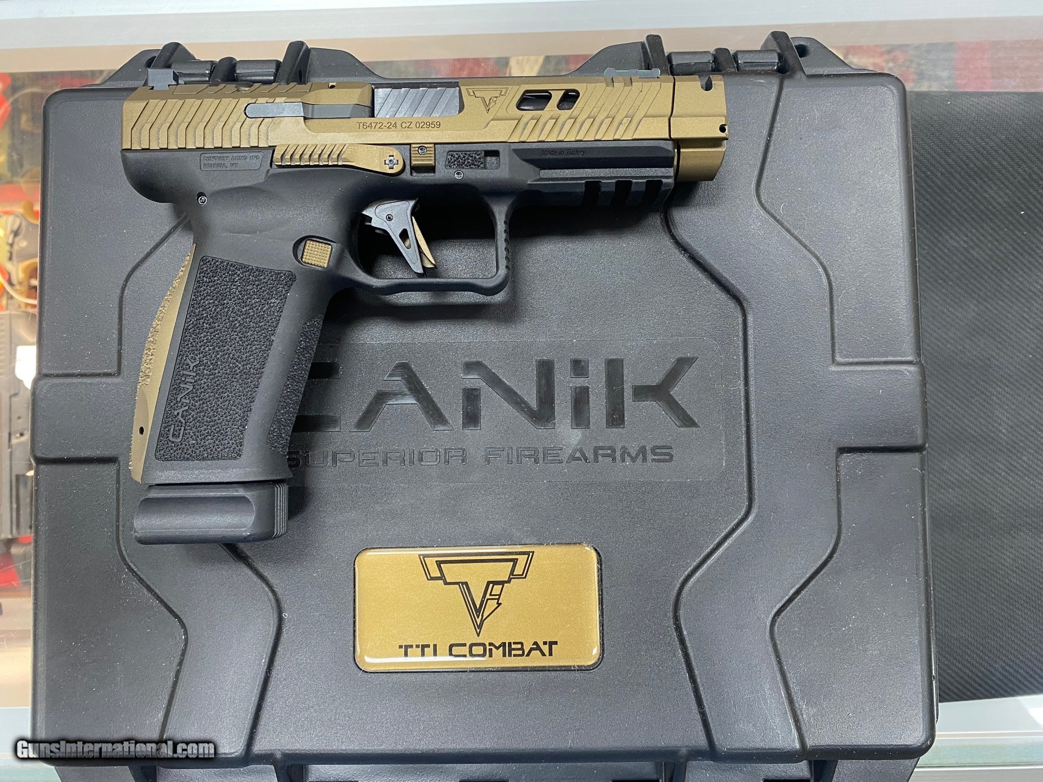 Description: Guns Listing ID: 579305 This pistol is equipped with everything you need to shoot like a pro, well not ammo but you get the idea. Great condition lots of accessories all for a reasonable price. Used but great condition. SOLD Manufacturer: CANIK Model: TTI Combat Caliber Info: 9MM LUGER (9x19 PARA) Condition: Used - Non-Certified Barrels: 4.5" BARREL Action: SEMI AUTOMATIC Finish: BLACK AND BRONZE |