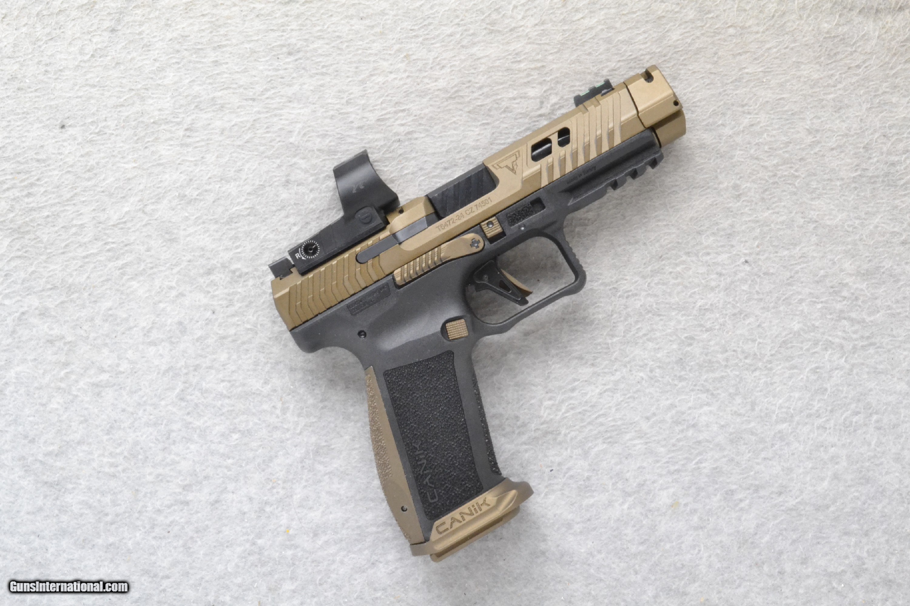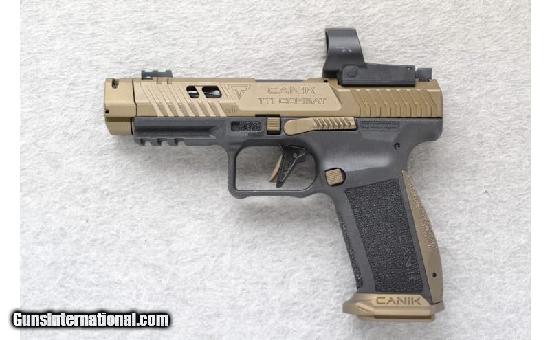Description: This Canik TTI Combat is a right-hand semi-auto pistol in 9MM Lugger Cal. The barrel is 4.5 inches long, fluted and ported. The slide is serrated and it has a bottom accessory rail. It has a green fiber optic bar front sight, a MeCanik MO3 scope, and an adjustable notch rear sight. The pistol grip has textured polymer side panels, a textured polymer front strap and a textured metal back strap. 9mm Luger Chambers: 18 round detachable magazine Bore Condition: Excellent Barrels: "4.5"", fluted, ported Weight: 2 lbs 4 oz Sights: "Green fiber optic bar front, MeCanik MO3 scope, adjustable notch rear Item Location: Richfield, WI Price: $974.99 Contact Seller |