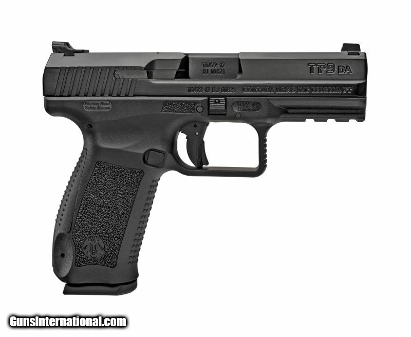Description: Manufacturer: Century Arms Model: Canik TP9DA SKU: HG4873-N Caliber: 9mm Luger Capacity: (2) 18 Round Magazines Barrel Length: 4.07" Match Grade Barrel Accessory Rail Sights: Warren Sights Frame: Black Polymer Overall Length: 7.16" Weight: 1.73 lbs The TP9DA was designed to give shooters the ability to carry a double-action/single-action style trigger in a modern polymer frame. The user-friendly decocker system enables users to carry the TP9DA with an extended first trigger pull, similar to traditional hammer-fired pistols. It is an ideal size compromise between a compact and full-size handgun featuring a 4.07” match grade barrel and interchangeable backstraps for a custom fit.