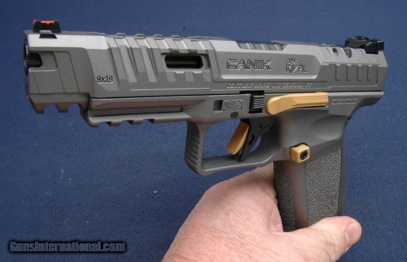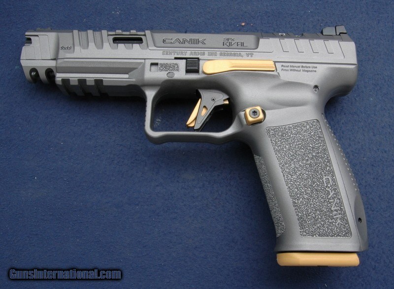 Description: New in the box, this Canik Rival is cool as hell! Comes in the factory box with all cool accessories, tools, holster, backstraps, optic mounts, floorplates, magwell, mag loader and two 10 round magazines. Neat gun with the grey, gold and black color combination. $40 shipping to the lower 48, 3% surcharge for using a CC. If you choose to pay with a personal check, we will hold the item for up to 10 days to make sure that it clears. Please expedite such pymts as we will hold an item on your word for 5 days. SOLD Handgun Caliber: 9x19mm Parabellum (9mm Luger, 9x19mm NATO) |
