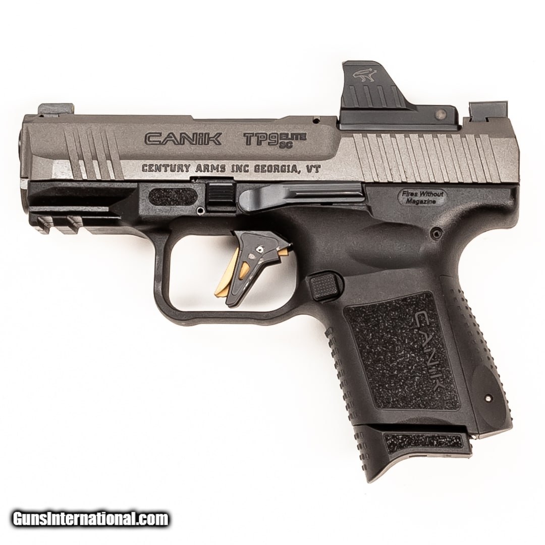 Description: Guns Listing ID: 903996 The Canik TP9 Elite SC (Superior Concealment) is a compact variant of the full-size TP9 Elite. It is a great duty, self-defense, and target pistol. This model has also won several awards including “Ballistics’ Best” compact semi-auto award. This pistol comes with three 15-round magazines and one 12-round magazine. Original case and manual are included along with extra backstraps, a mecanik red dot, and a right hand OWB holster. Get the best bang for your buck when you get a Certified Used Firearm . When you see the Certified Used stamp on any of our firearms, you can be confident that you’re getting exactly what you want – a gun only in very good to excellent condition and held to the highest quality standard. All Certified Used Guns come with a ‘no questions asked’ return policy . PLUS, ALL CERTIFIED USED GUNS SHIP FREE! SOLD Model: TP9 Elite SC Caliber Info: 9MM LUGER (9X19 PARA) Condition: Used - Certified Barrels: not specified |