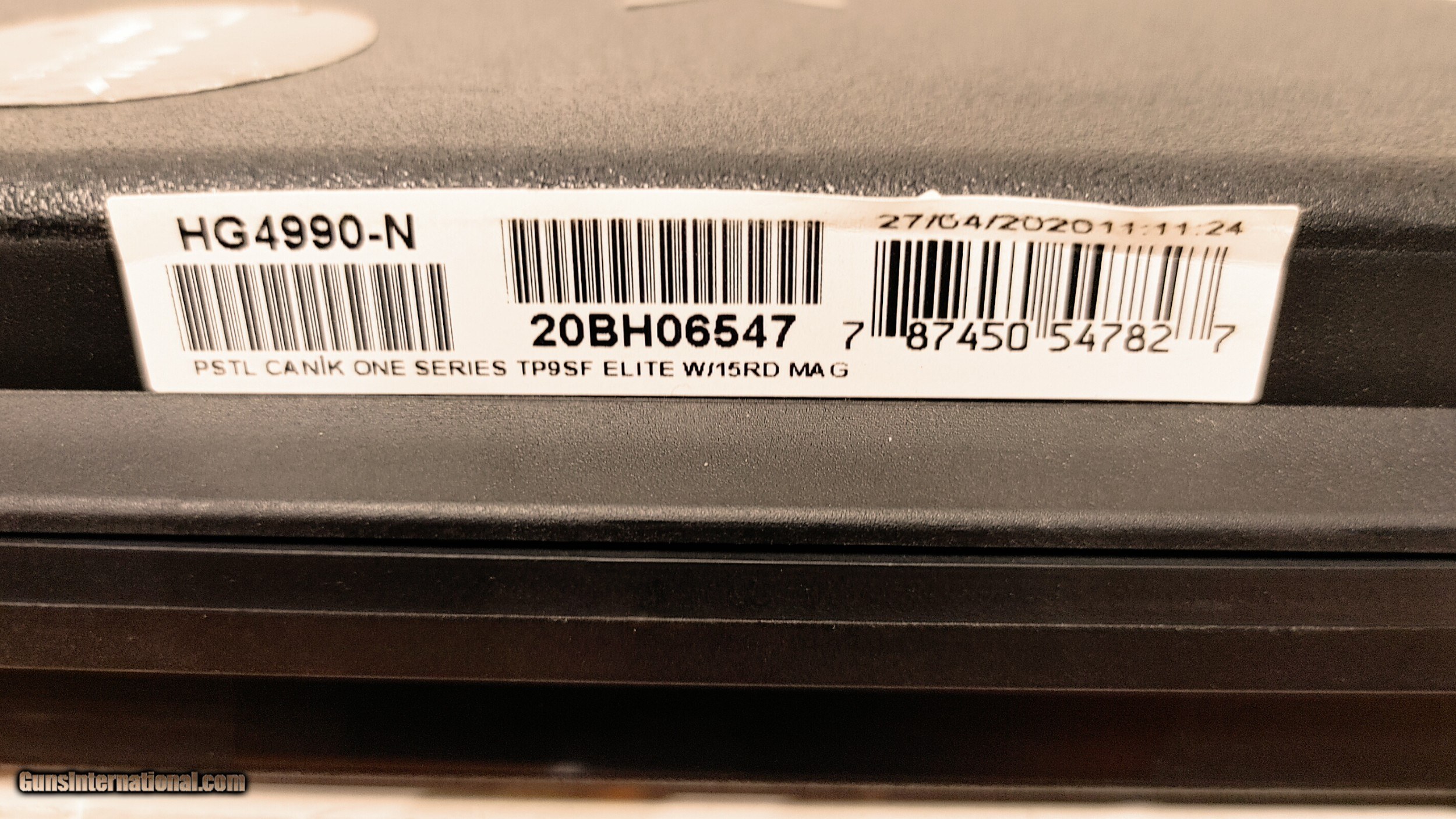 Used Canik TP9SF Elite One Series 9mm Pistol Black 9mm 4" barrel 1 15 round mag holster hard carry case good condition