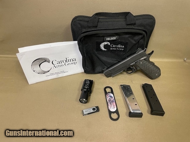 Description: Guns Listing ID: 1128726 CAROLINA ARMS GROUP MODEL - PRIVATEER CARRY CALIBER - .45ACP EXCELLENT LIKE NEW CONDITION 2 MAGS (8 & 7) 4\" BARREL SUREFIRE LIGHT X300 ULTRA ORIGINAL SOFT CASE & MANUAL SOLD Manufacturer: CAROLINA ARMS GROUP Model: PRIVATEER ARRY Caliber Info: .45 ACP Condition: Used - Non-Certified Barrels: 4 BARREL |