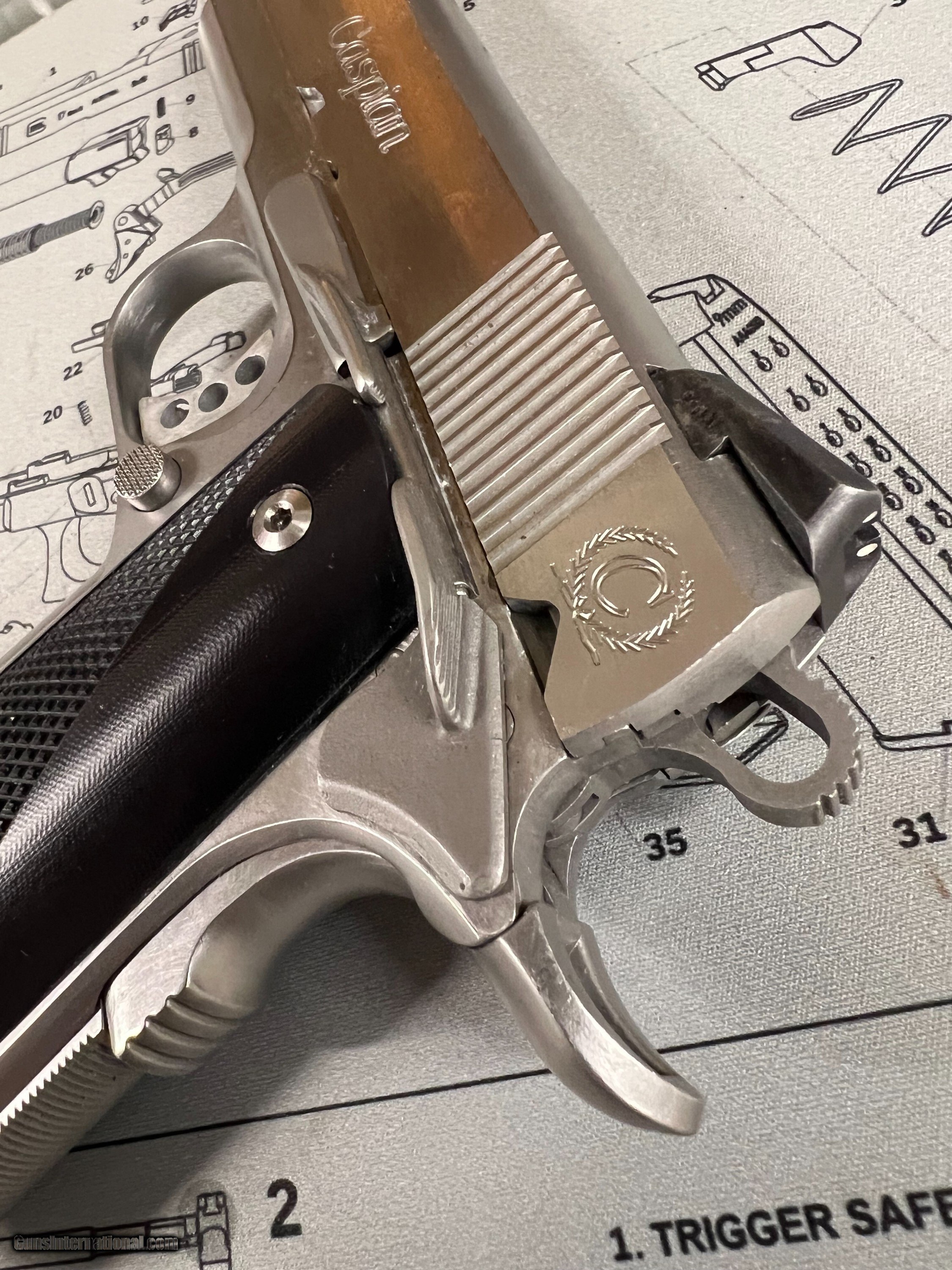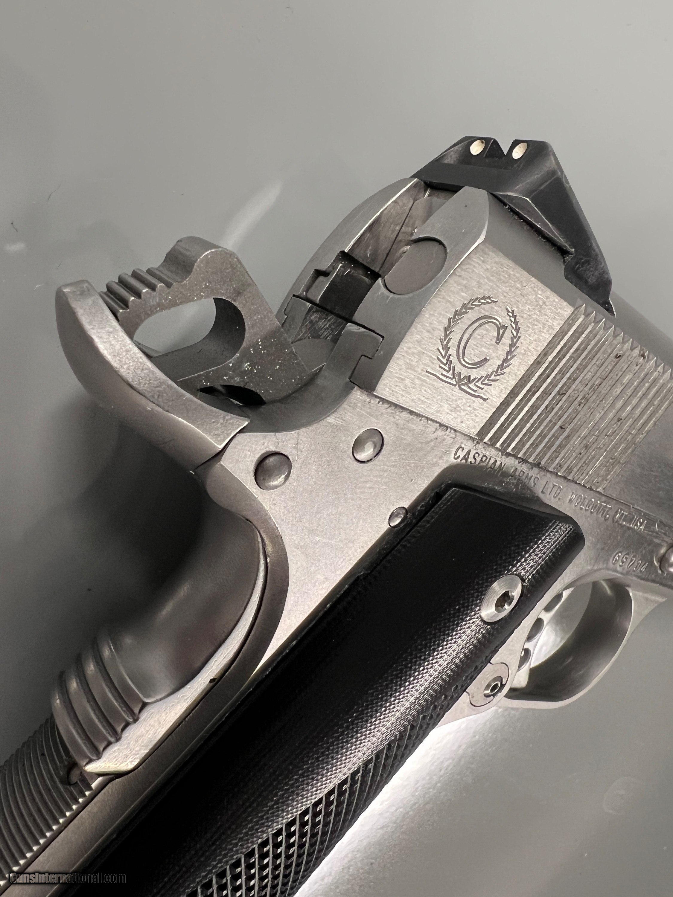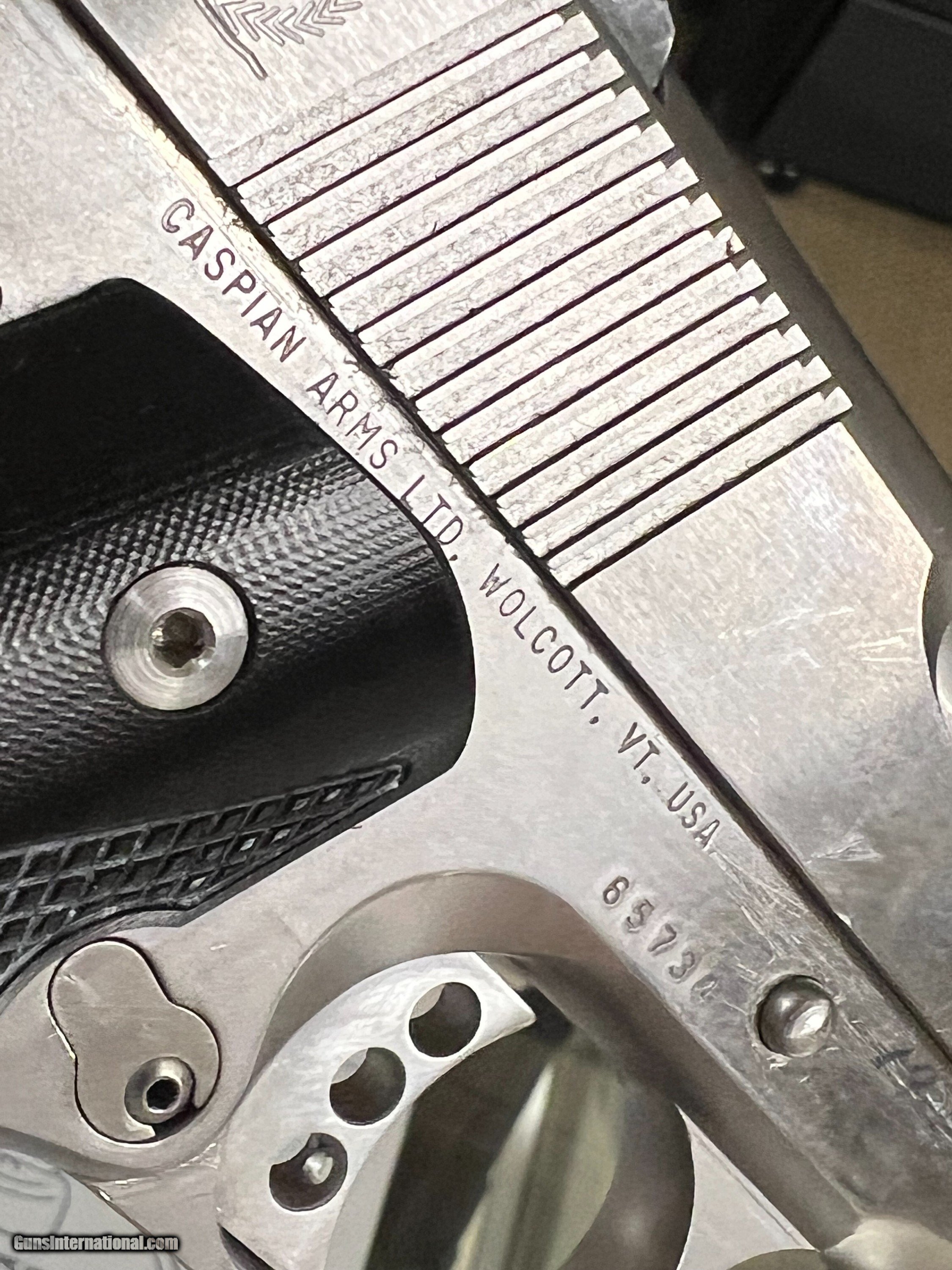Description: Great condition Hi-end carry all steel Caspian Arms,45 ACP Concealed Carry Beavertail backstrap, three dot sights, checkered front strap and back strap,flared mag well, serated slide front and back. Chip Macormick 7rd mag Superior build quality. Handgun Caliber: .45 ACP (.45 Auto) Manufacturer: Caspian Model: Compact Carry Serial Number: 65734 Barrel Length: 3.75 Bore Info: Ex Condition: Ex Metal Condition: EX Bore Condition: EX Price: $1,490.00 Buy Now Contact Seller |