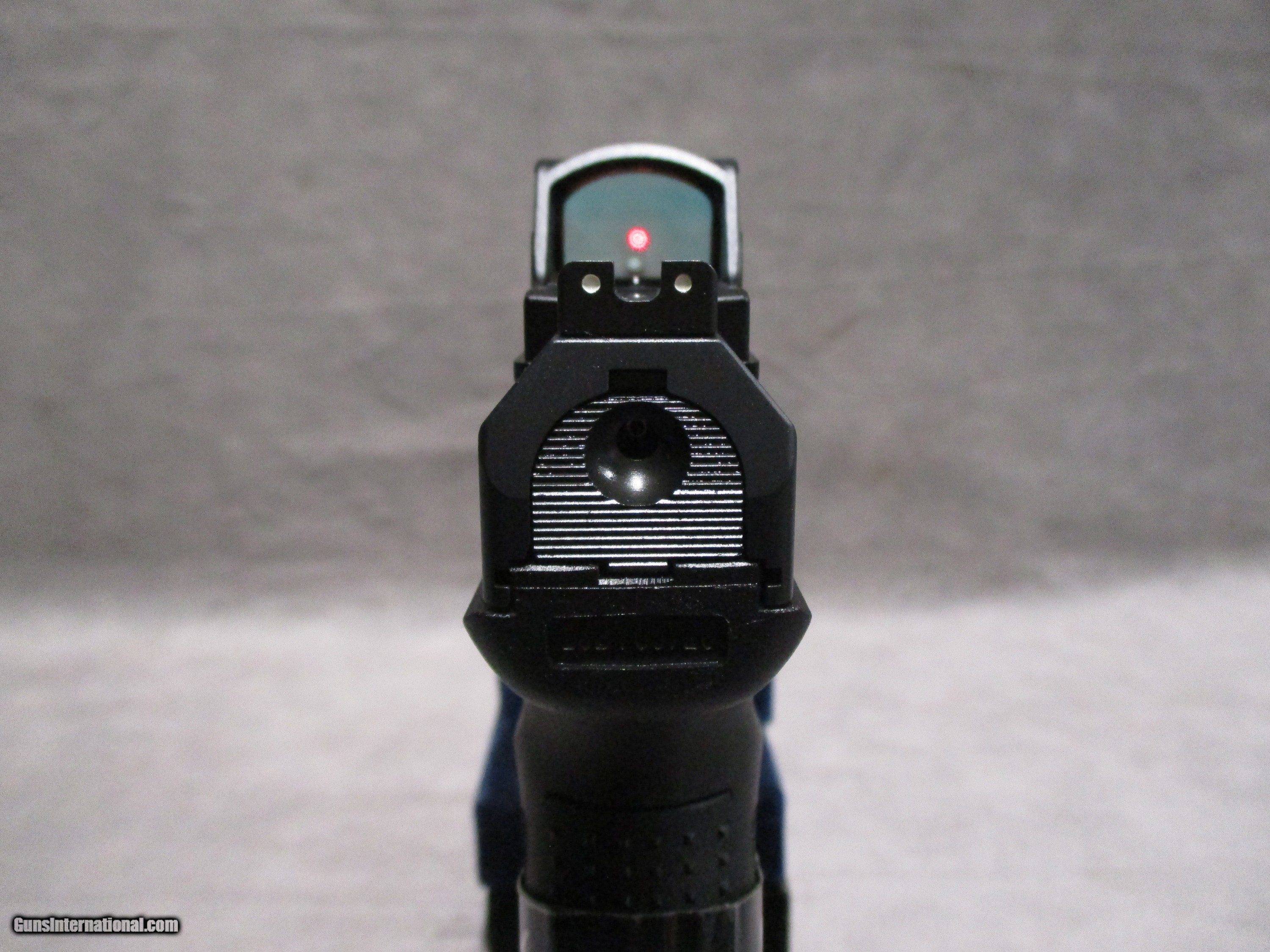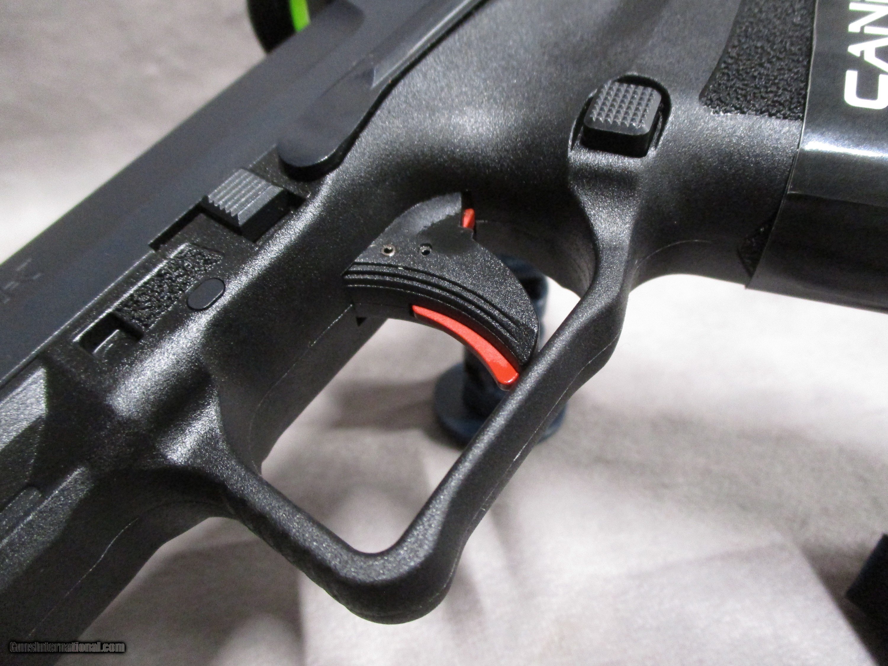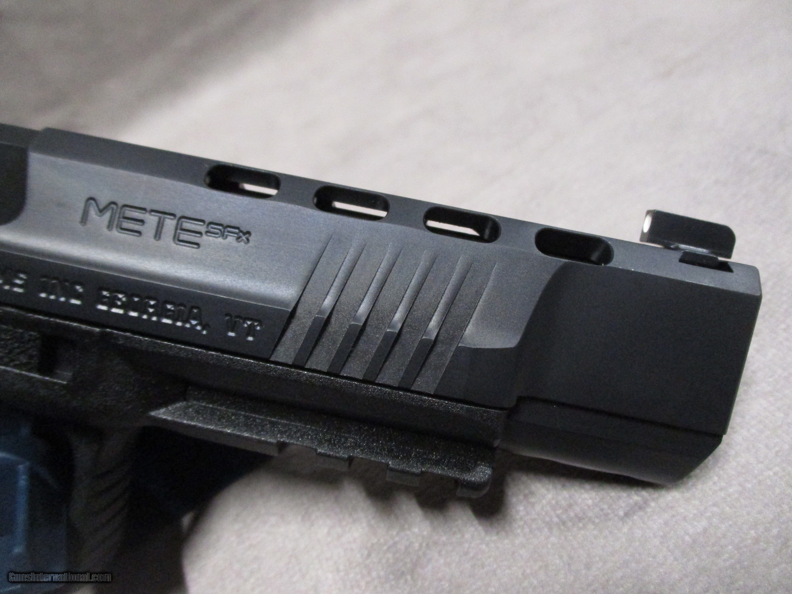Description: The Canik TP9 is one of the recent and newly popular pistols to be imported to the American market. Its various models are becoming increasingly popular as more and more people try out this excellent pistol. The Mete (pronounced Met-Ay) is one of the newest iterations, the one shown here being the competition model. The new Mete SFx is specifically designed to be superior to the TP9 SFx and is geared towards the same types of pistol competition such as 3-gun. It has a light, crisp trigger out of the box thanks to its nickel-coated action components. The Mete SFx features a match-grade 5.2-inch-long barrel, a low-profile ambidextrous slide stop, and 3-dot white sights. The slide has weight-reducing cuts to keep the balance of the pistol close to the standard full-size TP9 models. The grip features an integral flared-mag-well although this pistol has been fitted from the factory with the larger Speed flared adaptor which fits over the original mag-well flare. As with the standard TP9, the frame is equipped with a 1913 picatinny under-barrel rail. The magazine catch is reversible for left-hand shooters. One major improvement over the TP9 SFx is that the rear sight and optic plate are now separate, allowing for the user to co-witness their chosen optic with the pistol’s base iron sights. Another improvement over the TP9 SFx is the internal changes made to the pistol to allow for easier disassembly. These begin with the easy-in-easy-out push pins which can be removed using a little pressure from a punch (see accessories below). Once these are removed, the internal parts are arranged to be modular enough that a complete disassembly and reassembly of the pistol is possible just using the punch. The Mete SFx comes with a very high number of accessories compared to most name brand pistols such as Smith & Wesson, Ruger, Glock, and H&K. The SFx comes with two mounting plates that fit the Trijicon RMRcc and Shield RMS/RMSc micro-optics. This example, however, comes with a MECANIK M01 red dot optic installed with its own optic plate included. Also included as accessories are a spare backstrap for the grip, a reversible IWB/OWB holster, Canik punch and tool kit, a multi-tool for use with the MECANIK optic, cleaning tools, one 20-round and one 18-round magazines, and a magazine loading tool. The holster allows the SFx to be holstered with a red dot mounted. The tool kit is neatly shaped like a miniature Mete. There ARE a few parts not shown in the first picture but are indeed present in the box. These include the original cover plate for the slide, as well as its screws and washers, plus one of the two optic plates included with the Mete SFx as standard. This pistol is brand new and remains unfired outside of factory testing. If you are looking for a reliable competition pistol, the Mete SFx is an excellent choice. SOLD Handgun Caliber: 9x19mm Parabellum (9mm Luger, 9x19mm NATO) Manufacturer: Century Arms Model: Mete SFx Serial Number: 23BY05726 Bore: Button rifling, 6 grooves, 1:10 inches (1 in 254 mm) RH twist Ejectors: Auto-ejection Condition: New in Box Barrels: Steel Barrel Type: Match Grade, tilting Action: Browning type short-recoil, locked breech, tilting barrel. Triggers: Short reset Single-Action trigger with nickel-coated action components Stock: Polymer with concave double undercut trigger guard and interchangeable backstraps Fore End: Polymer, picatinny rail equipped LOP: 3.0 inches (76.2 mm) Finish: Matte black Weight: 2.0 lbs. Sights: 3-dot white sights, Sight Radius 7.5625 inches (192.1 mm). MECANIK M01 Red Dot Optic Extras: See description Case: Canik Box |