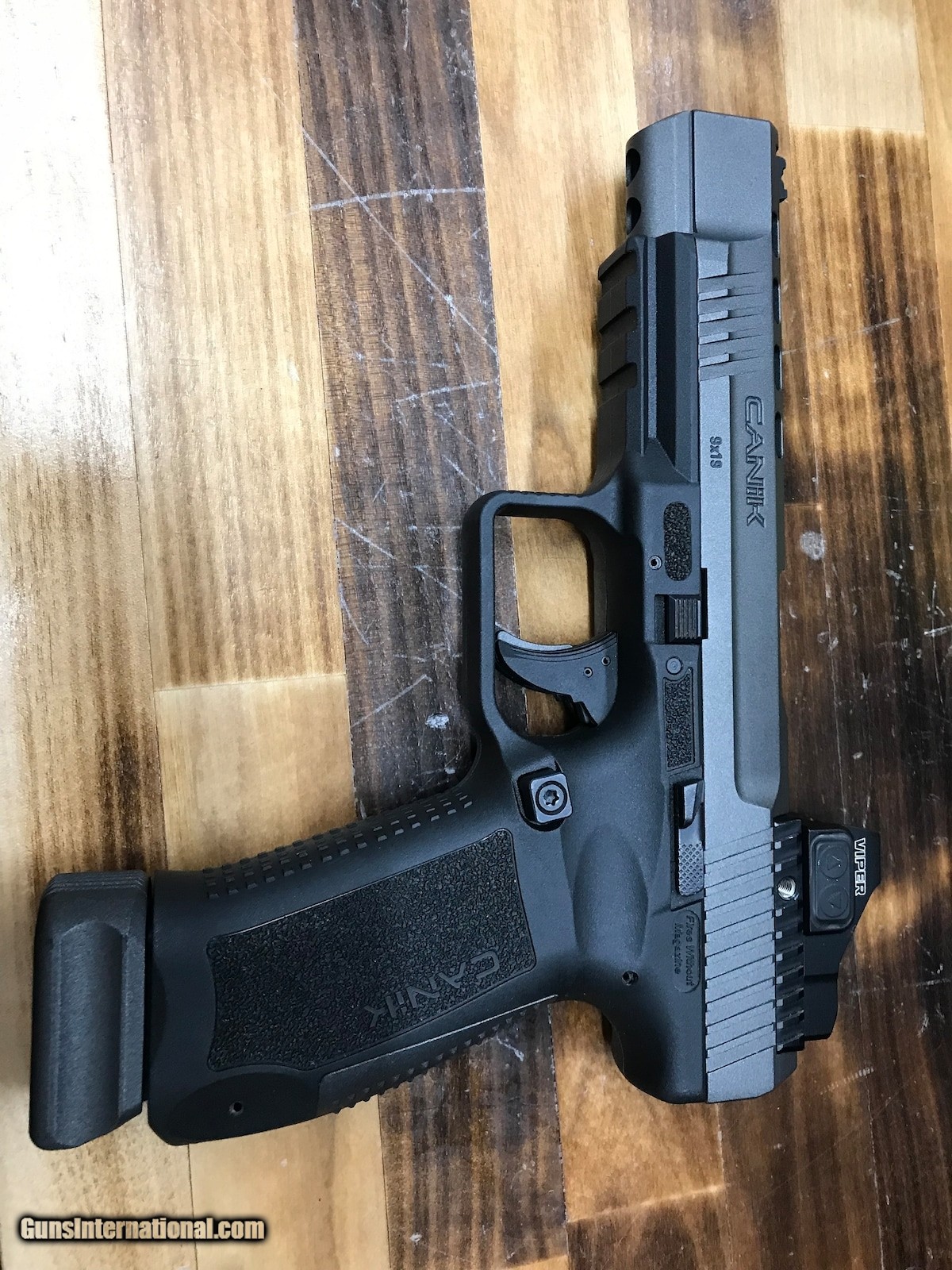 Description: Guns Listing ID: 896604 this is a used century arms canik tp9. Short reset Single-Action trigger design with nickel-coated action components. Accessory under-barrel rail. Loaded chamber indicator. Side reversible magazine catch and alternate backstraps for a custom fit. Available in Black or Flat Dark Earth, with 18-round or 10-round magazines. SOLD Manufacturer: CENTURY ARMS Model: Canik tp9 Caliber Info: 9MM LUGER (9X19 PARA) Condition: Used - Non-Certified Barrels: 4 BARREL Finish: BLACK |