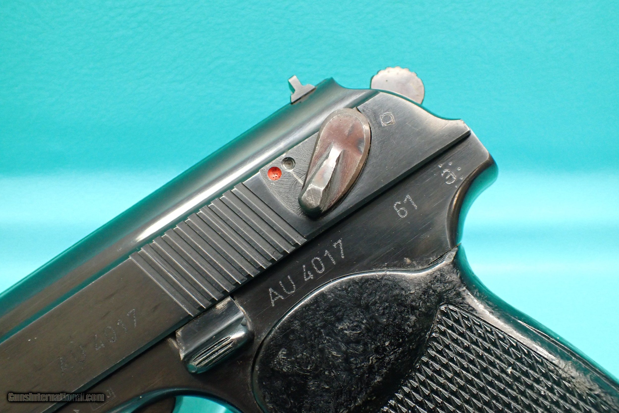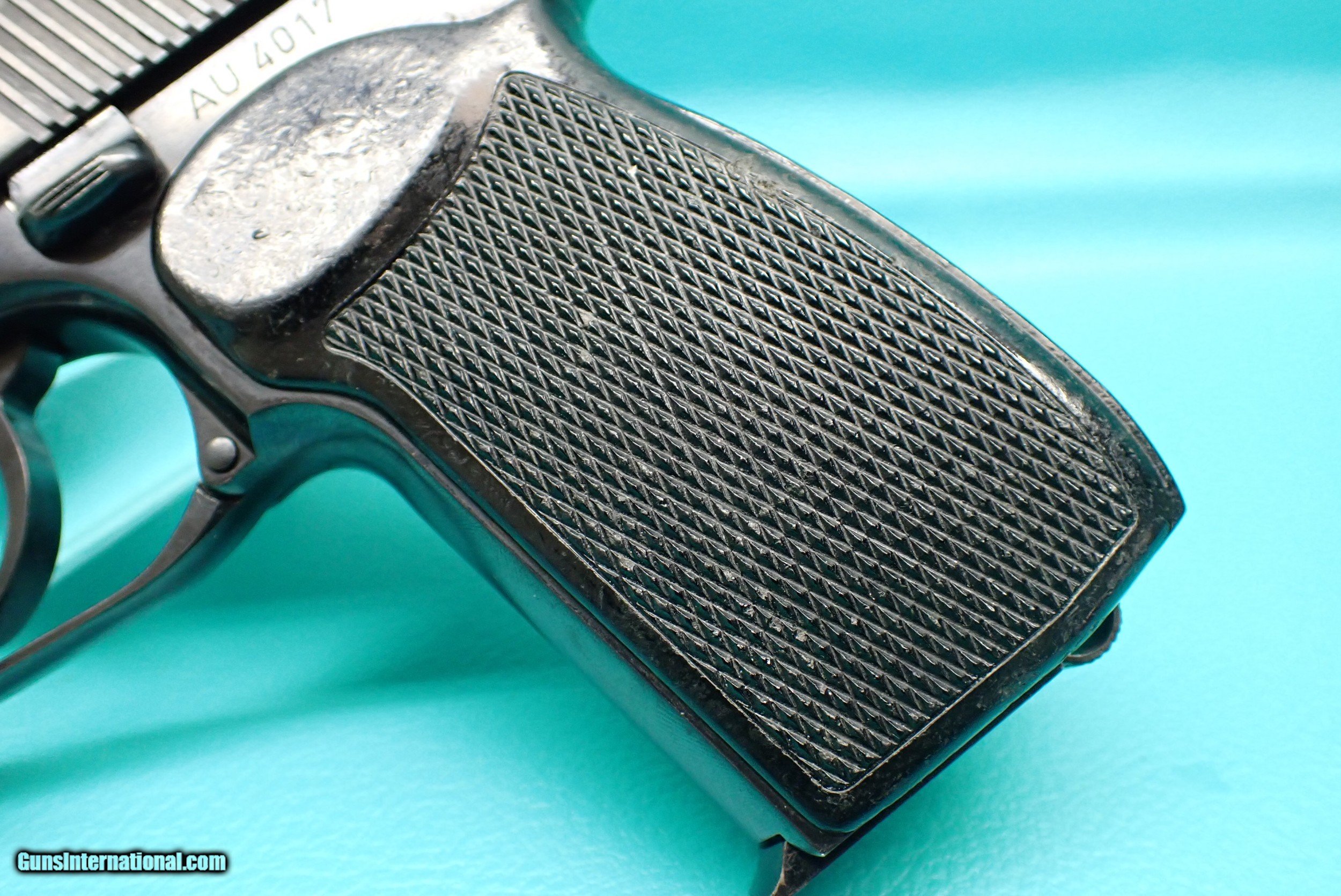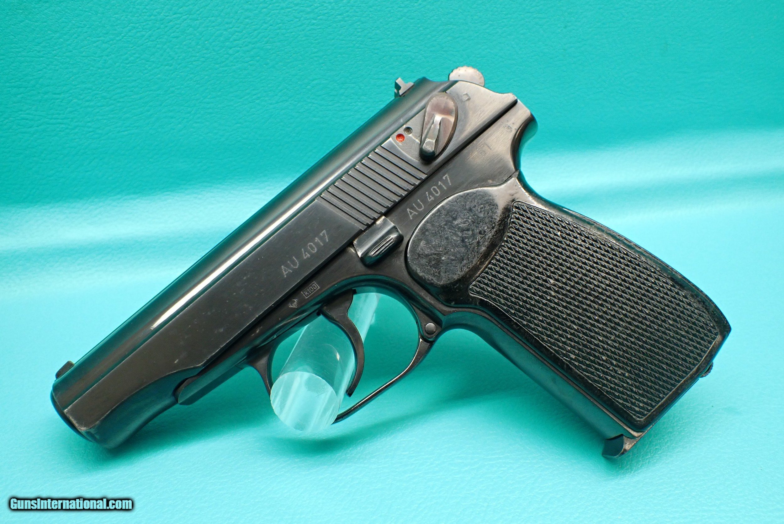 Description: ***SOLD*** Century Arms Makarov 9mm Mak semi automatic pistol, marked "Germany". This pistol features the famous Makarov pistol profile and blowback design, with a DA/SA hammer fired action, blued finish, black plastic grips, and a slide mounted decocker. The pistol is in great working order with some minor finish wear in contact areas, as shown. The action is fully operable, and the bore looks great. Includes one 7rd magazine. Please refer to the photos for overall condition. A great range shooter! No handgun sales in MA. Shipping $25.00 / USPS. SOLD Manufacturer: Century Arms Model: Makarov Serial Number: AU4017 |