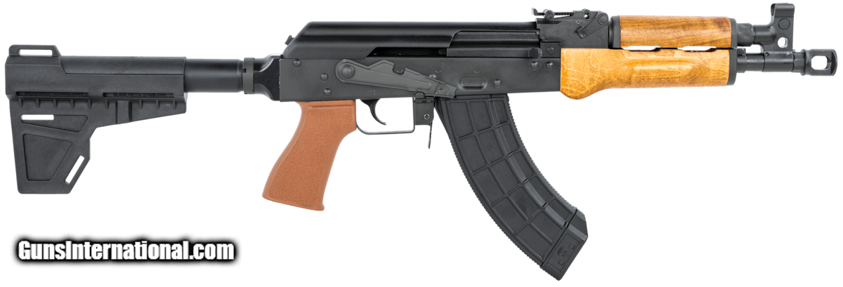 Description: Guns Listing ID: 390292 The US Draco Enhanced AK Pistol is a semi automatic AK47 pistol chambered in 7.62x39. This pistol features a 10.5\" barrel with an overall length of 19.5\" so great for home defense or camping needs. Comes with an enhanced trigger group, wood forearm and a Shockwave blade for shooting accuracy & safety . The barrel is threaded 14x1mm LH with a cool muzzle brake that can be removed if you would like to install another style muzzle device.Wood front handguard. Great complete turn key package ready to Rock N Roll right out of the box and guaranteed to provide great fun the shooting range with family & friends. SOLD Manufacturer: CENTURY Model: Draco Caliber Info: 7.62X39MM Condition: new Barrels: 10.5" barrel Finish: BLACK |
