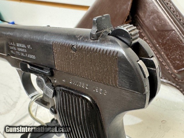 Description: Used 1953 Century Romanian TTC 7.62x25 4 1/2" bbl 1 mag leather carry case Buyer pays shipping Millers Gun Center Located in New Castle, Delaware "Home of TAX-Free shopping" No Credit Card Fees Send Gun international inquiry and then call 302-328-9747 to complete your purchase SOLD Serial Number: BH1630 1956 |