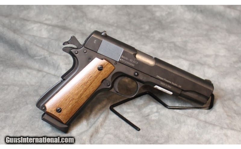 Description: .45 Auto SOLD Chambers: 45 Auto Metal Condition: Great Wood Condition: Great Bore Condition: Shiny Barrels: 5 inch Triggers: Crisp Weight: 2.5lbs Sights: Factory Item Location: Independence, MO |