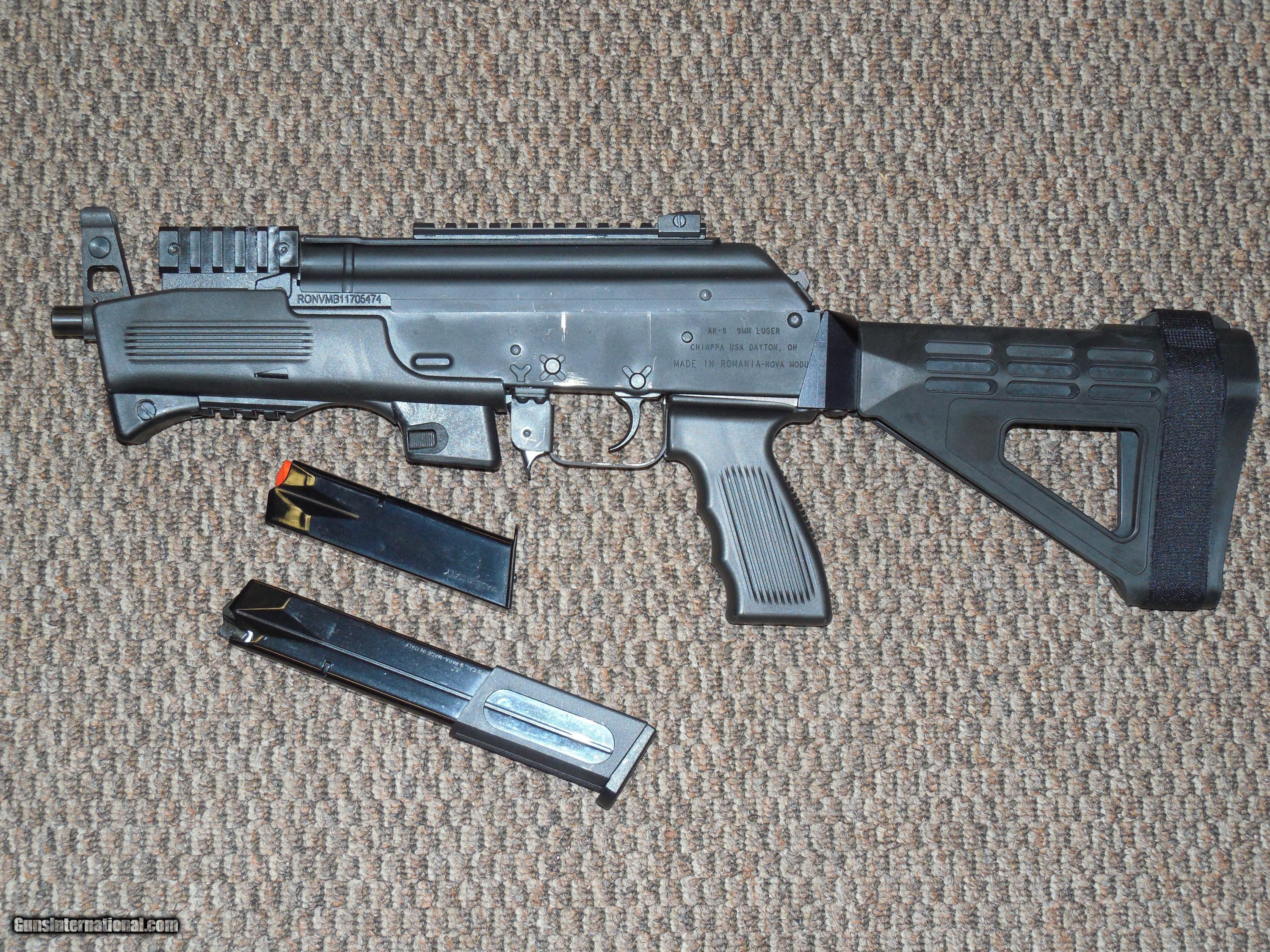 CHARLES DALY/CHIAPPA AK-9 PISTOL IN 9 MM WITH SB TACTICAL BRACE USES BERETTA MAGAZINES