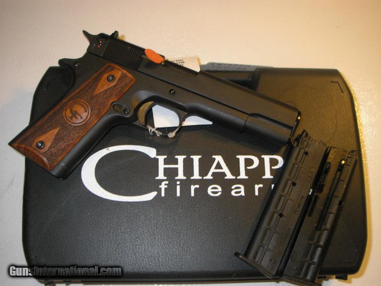 Description: FACTORY NEW IN BOX CLICK ON PICTURE TO ENLARGE Chiappa MKS 1911-22 22LR 10+1 Blk Fin 5" Button Rifle SAO Walnut Grip Chiappa's Model 1911-22 features similar weight and handling characteristics of the original 1911 with a redesigned action utilizing a fixed barrel design yielding very high accuracy at an affordable price. Constructed from Chiappalloy and steel components featuring wooden two piece grips. Standard, Tactical and Target models available, it is the natural choice for semi-auto plinking, target shooting and affordable handgun fun. SPECIFICATIONS: Mfg Item Num: 19112 Category: PISTOLS Type :Pistol Action :Single Caliber :22 Long Rifle Barrel Length :5" Capacity :10+1 COMES WITH TWO MAGAZINES Safety :Hammer Block Grips :Walnut Sights :Dovetail Front, Fixed Rear Weight :32 oz Frame Finish :Black Frame Material :Chiapalloy Barrel Type :Button Rifled Slide Description :Black Case Type :Hard Plastic Barrel Finish :Black Barrel Length Range :5.00" to 5.99" Weight Range :32.00 oz to 47.99 oz WE TAKE Money Order OR Certified Checks PERSONAL CHECKS HELD TILL CLEARED SHIPPING FOR HAND GUNS $ 25.00 SHIPPING FOR RIFLES $ 30.00 Sorry No sales outside U.S. PLEASE BE SURE THIS GUN IS LEGAL IN YOUR STATE I WILL SHIP GUN TO YOUR FFL DEALER, YOU NEED TO SEND ME THE PHONE # OF YOUR DEALER SO I CAN CALL HIM FOR HIS FFF LICENSE WHEN E-MAILING ME I WILL REPLAY, IF YOU DO NOT SEE A REPLAY FROM ME, CHECK YOUR JUNK MAIL, IT MAY GO THERE SOMETIMES THANK YOU AND GOD BLESS OUR TROOPS !!!!!!!!!!!!!!!!!!!!!!!!!!!!!!! SOLD |
